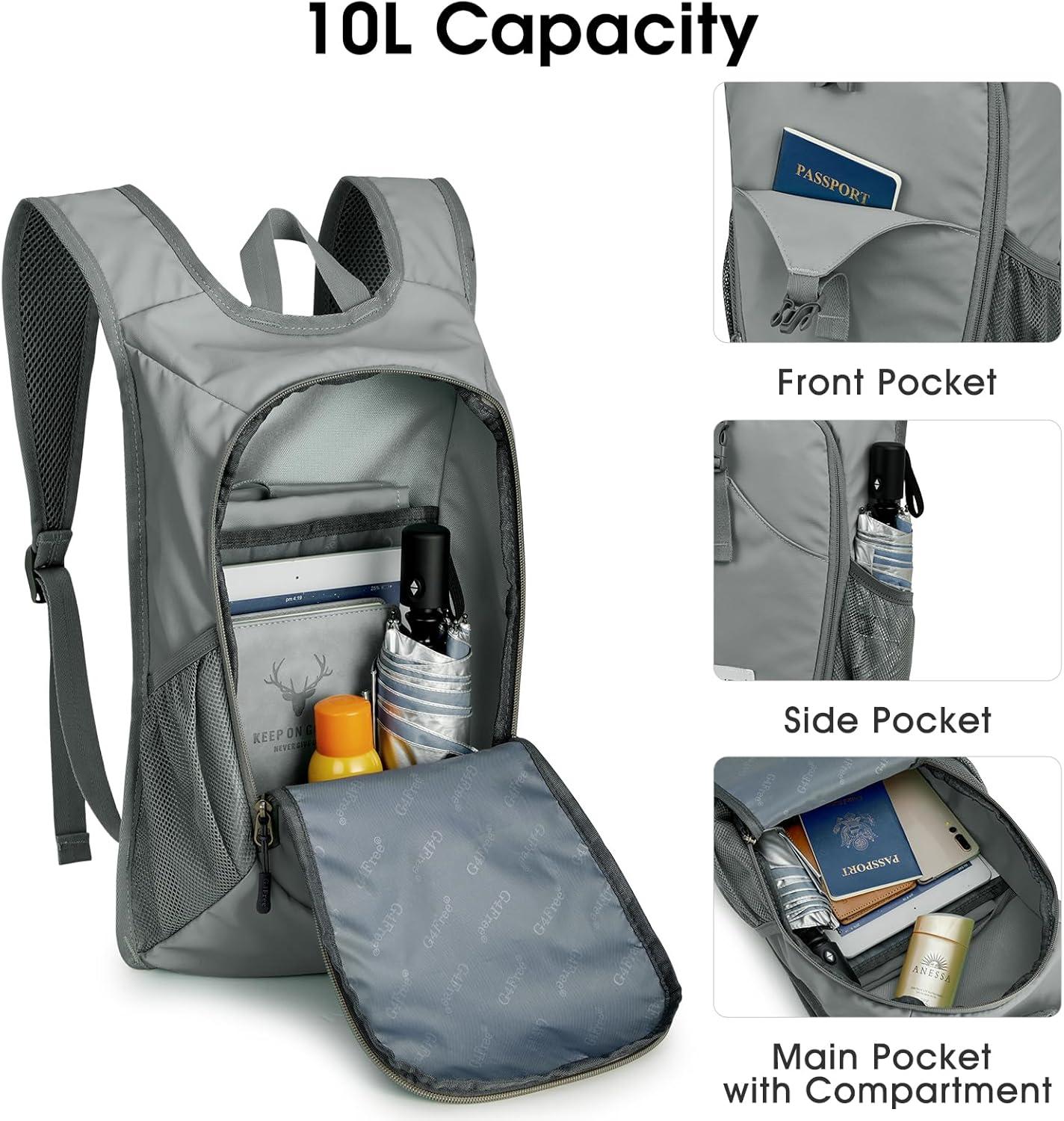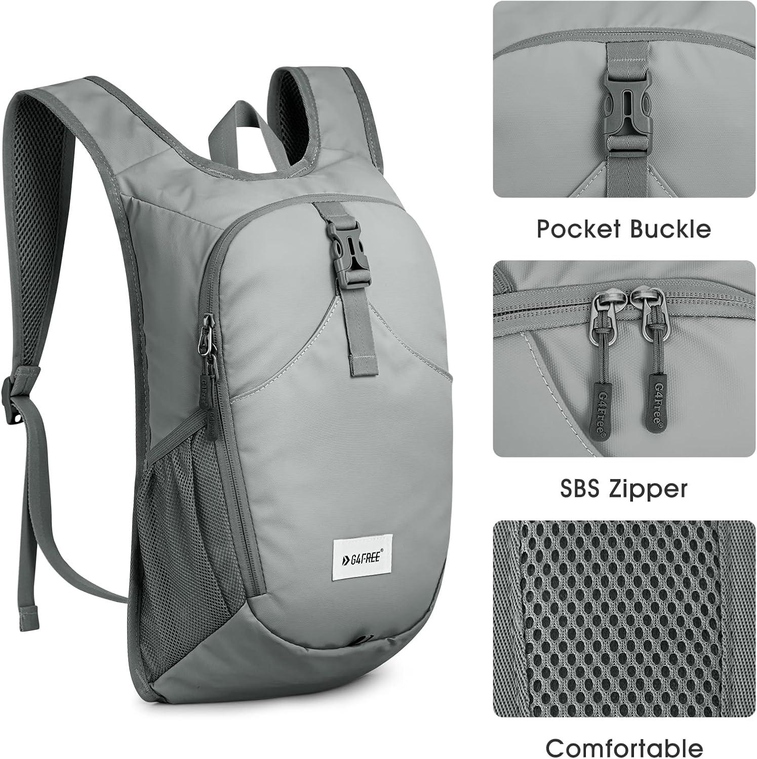 G4Free 10L Hiking Backpack, Lightweight Small Hiking Daypack Small Outdoor Travel Foldable Shoulder Bag(Grey)