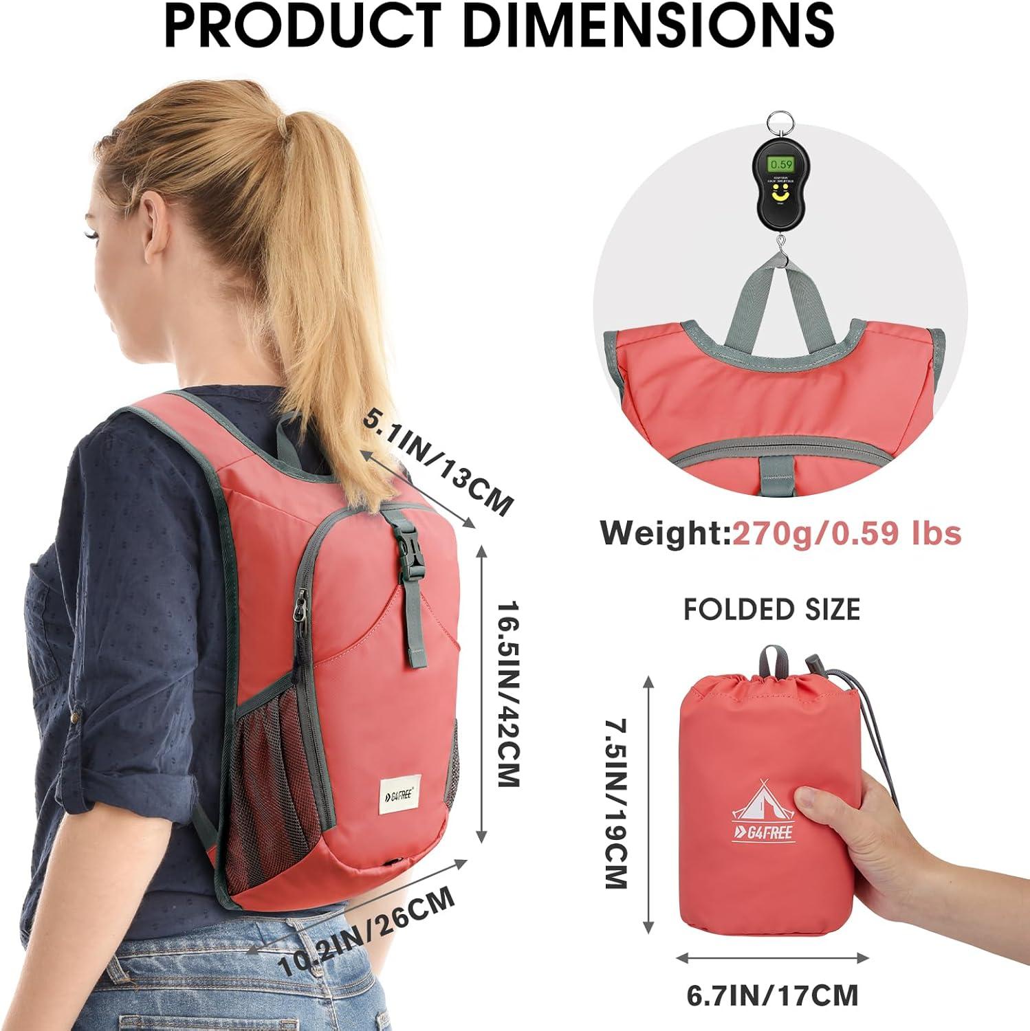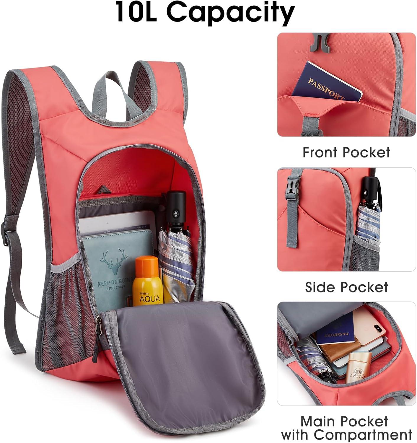 G4Free 10L Hiking Backpack, Lightweight Small Hiking Daypack Small Outdoor Travel Foldable Shoulder Bag(Light Coral)