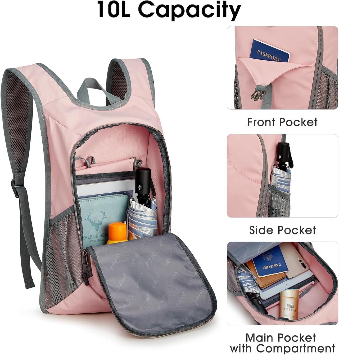 G4Free 10L Hiking Backpack, Lightweight Small Hiking Daypack Small Outdoor Travel Foldable Shoulder Bag(Pink)