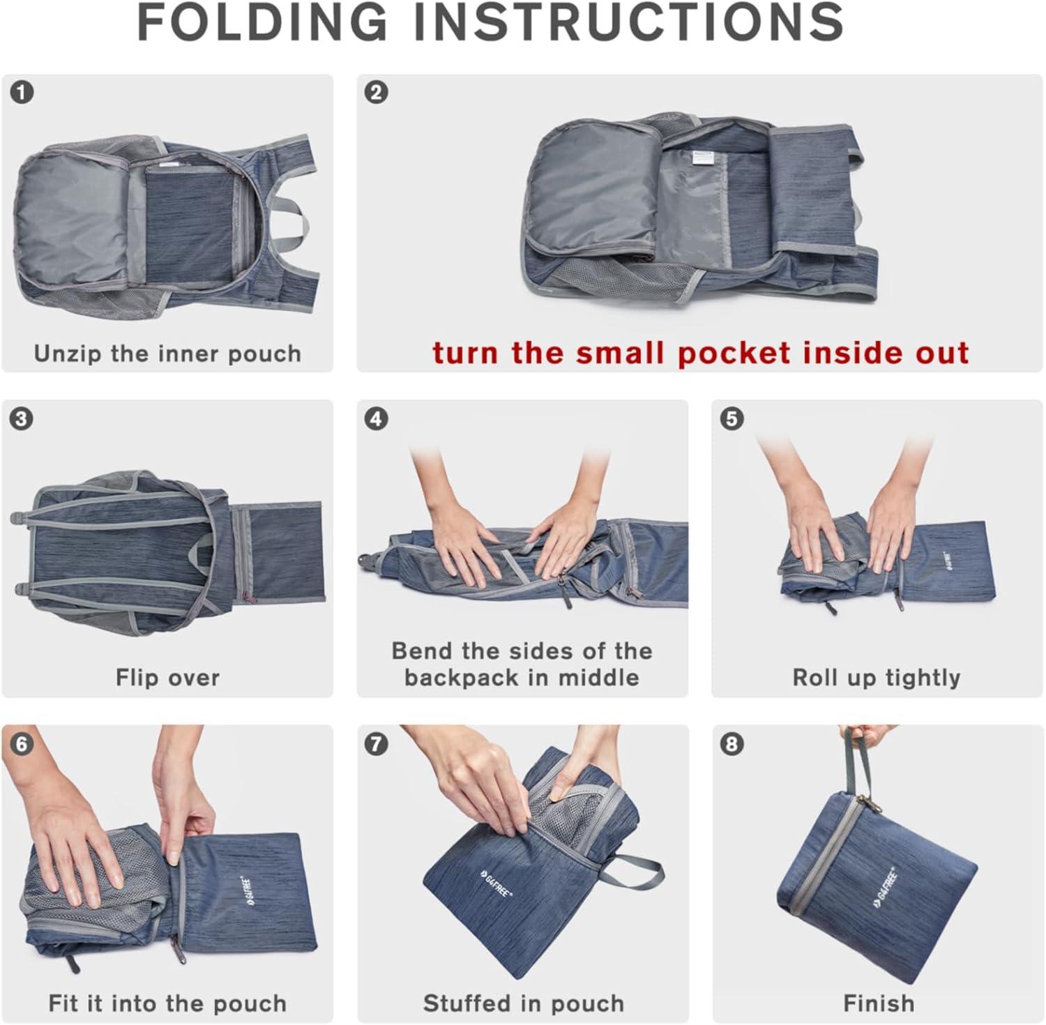 【Foldable & Lightweight】 There is a storage pocket inside the backpack, which can be turned inside out to fold the entire backpack. The folded size is only 7.5 x 6 inches, easily packed in your coat pocket, luggage, or handbag. Then unfolded when you need it, the expansion size is 15.5x9x3.5 inches. It is very convenient to carry and store in daily life. Unisex hiking backpack.