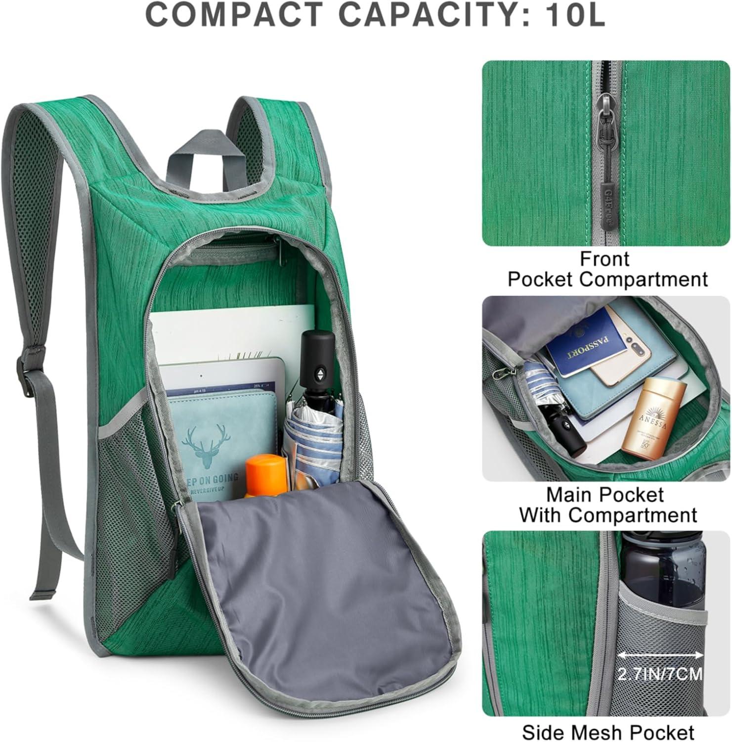 G4Free 10L Hiking Backpack Small Travel Hiking Daypack Lightweight Packable Backpack Casual Foldable Shoulder Bag(Green)