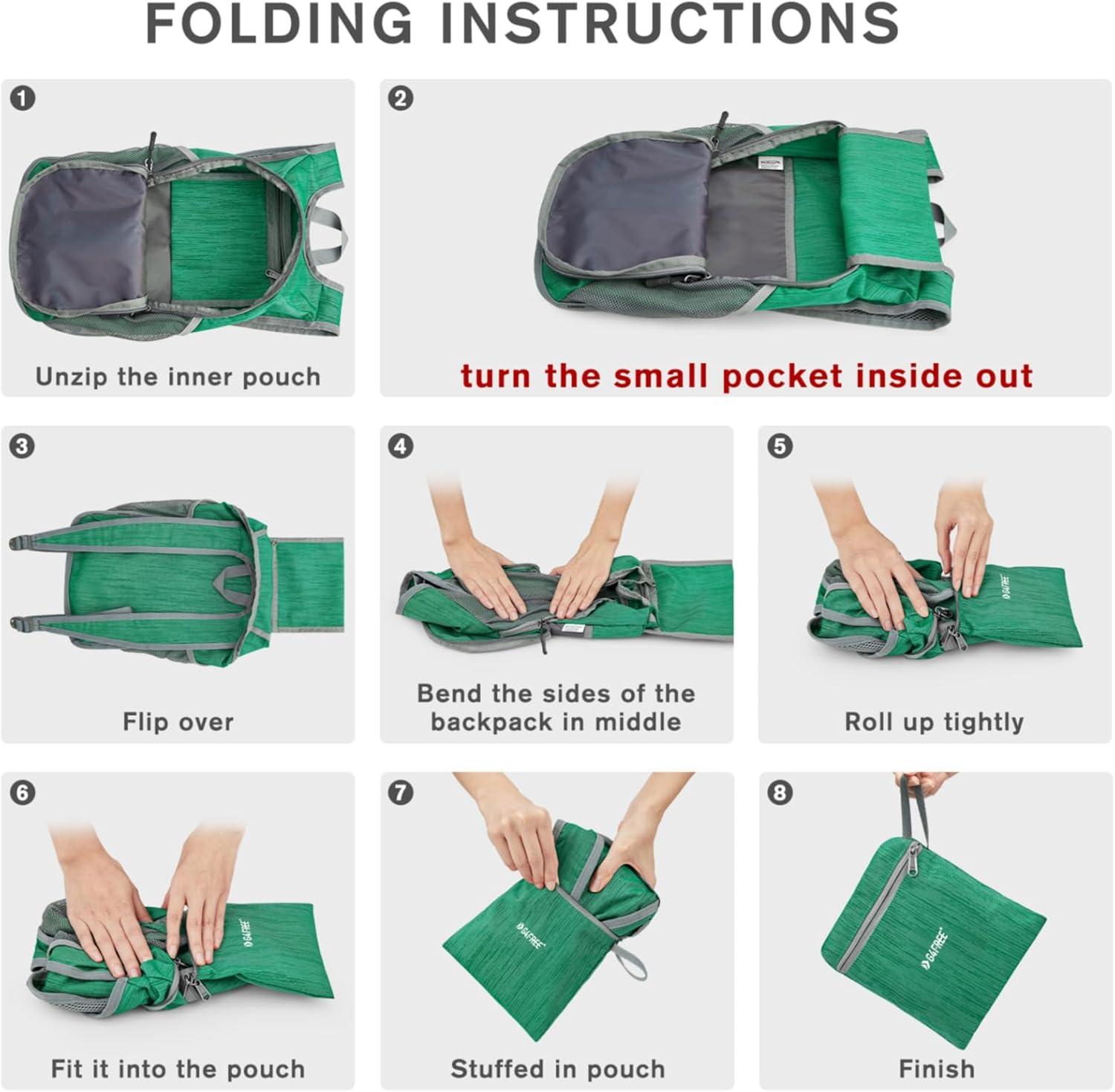 【Foldable & Lightweight】 There is a storage pocket inside the backpack, which can be turned inside out to fold the entire backpack. The folded size is only 7.5 x 6 inches, easily packed in your coat pocket, luggage, or handbag. Then unfolded when you need it, the expansion size is 15.5x9x3.5 inches. It is very convenient to carry and store in daily life. Unisex hiking backpack.