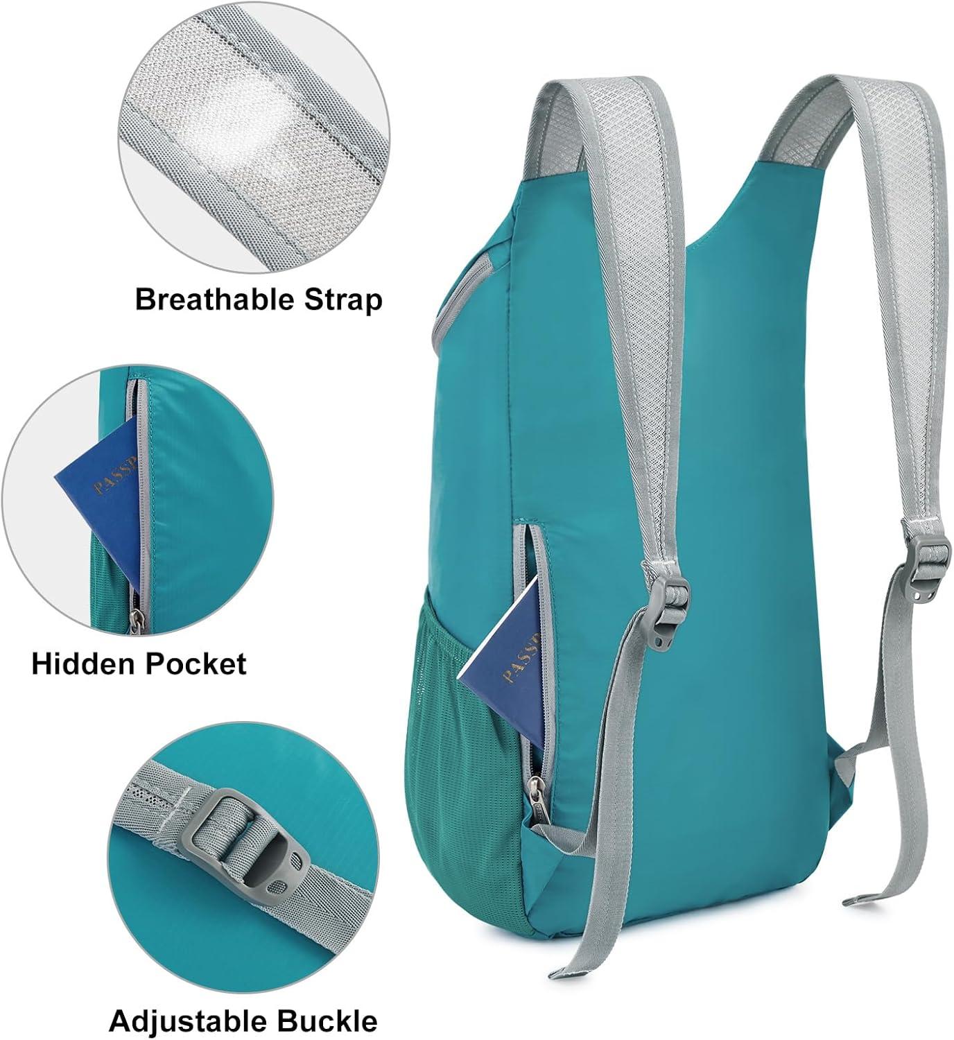 【Durable Material】 This packable backpack is equipped with heavy-duty two-way SBS metal zippers, and made with high-quality tear and water-resistant material, which provides extra strength and long-lasting performance. Breathable mesh shoulder straps and foam padding help reduce pressure on your shoulders and keep you comfortable.