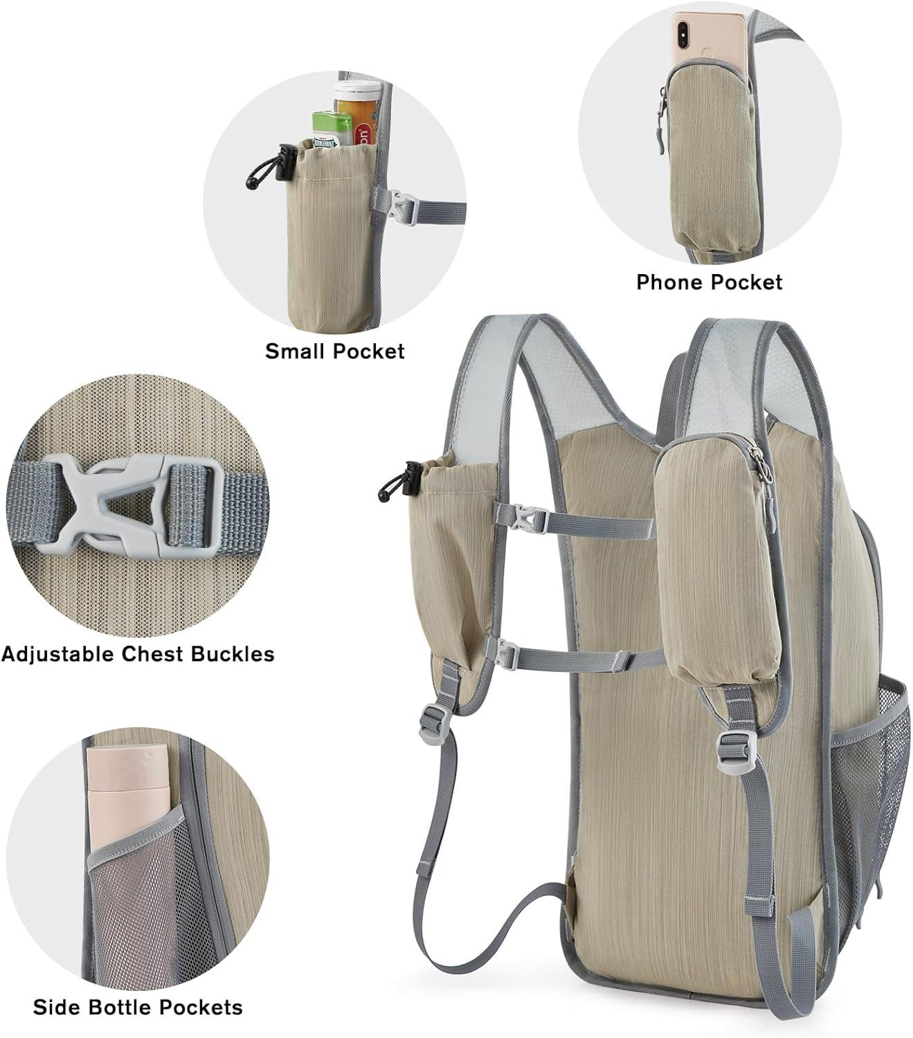 Strap Pouches:The small backpack has two easy access pockets on shoulder straps, which can be used to store phone, sunglasses, sunscreen, energy bars and other commonly small outdoor items