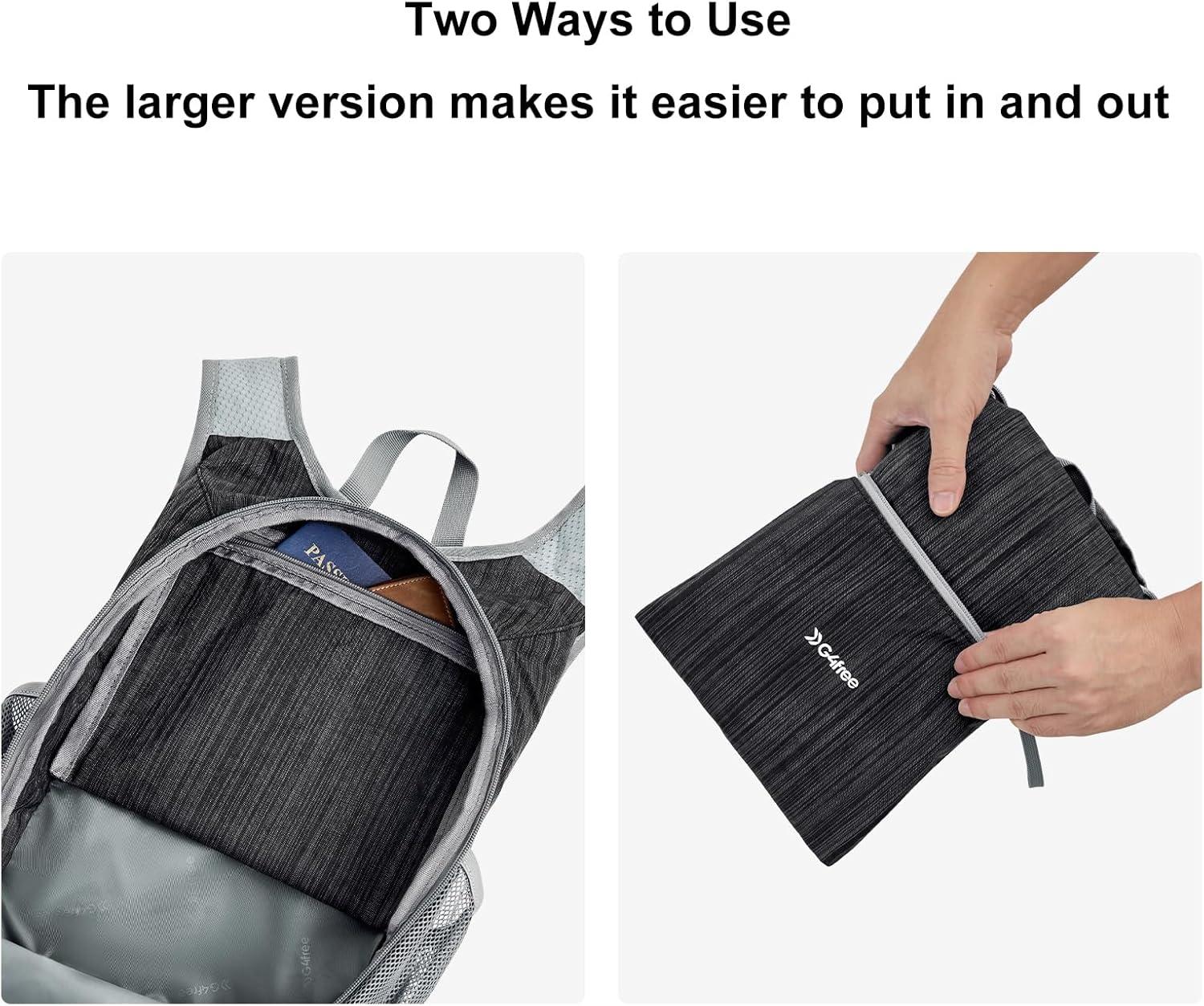 Foldable Daypack:This travel backpack comes with its own pack pouch (not an extra bag, just its own inner pocket), which can pack the whole bag to help you save space in your luggage and make it freer and more lightweight to travel with