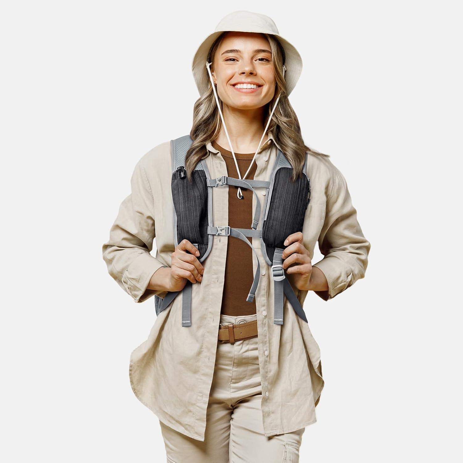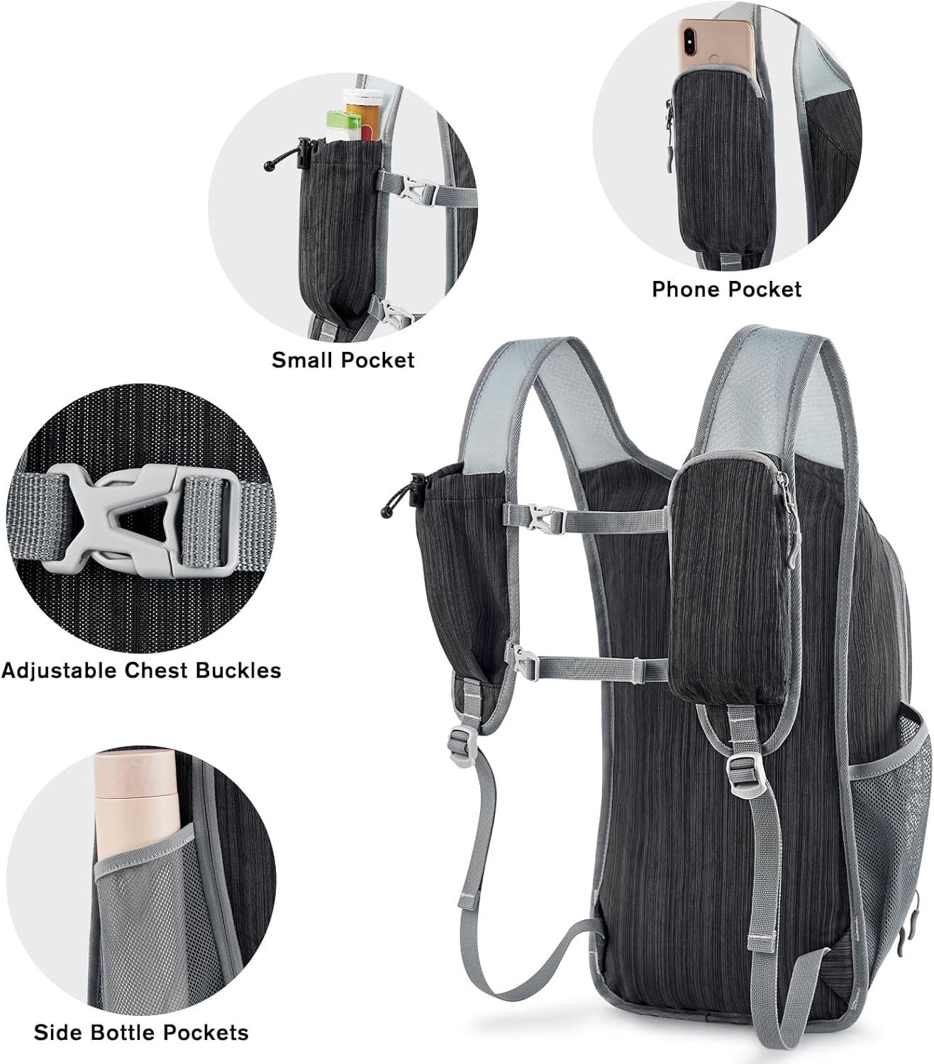 Strap Pouches:The small backpack has two easy access pockets on shoulder straps, which can be used to store phone, sunglasses, sunscreen, energy bars and other commonly small outdoor items