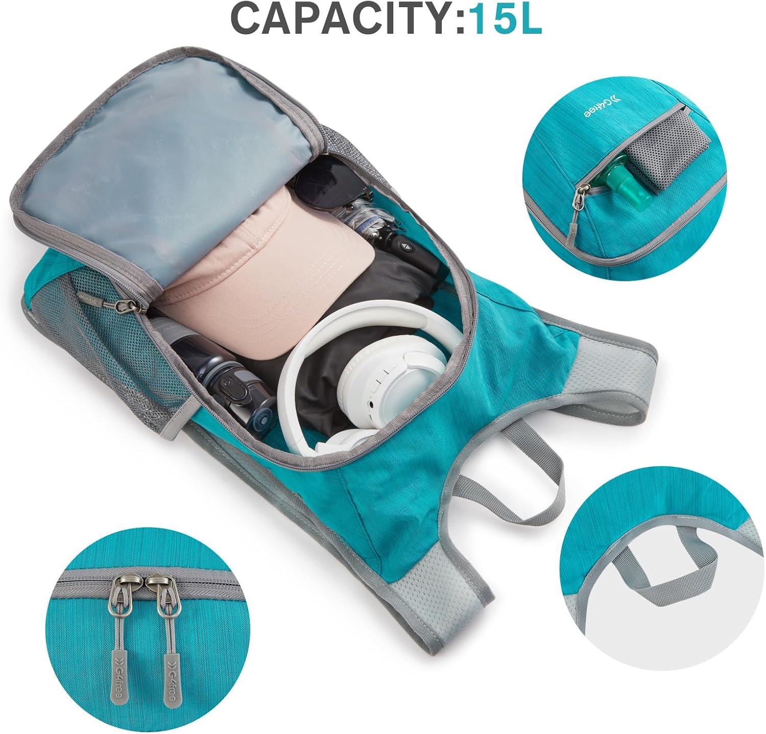 imageG4Free 15L Hiking Daypack Lightweight Travel Backpack Packable Outdoor Casual Foldable Shoulder Bag BlackPeacock Blue