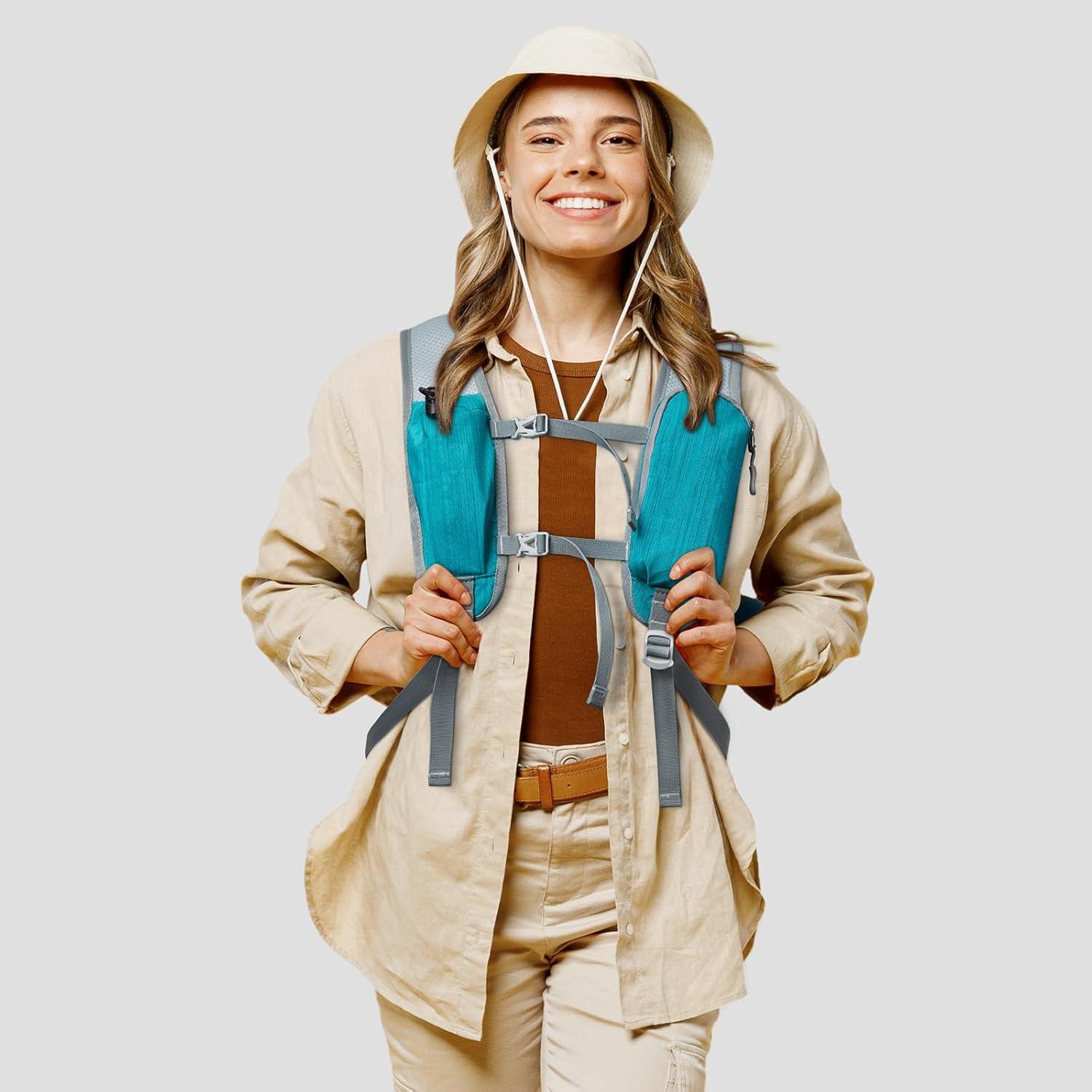 Strap Pouches:The small backpack has two easy access pockets on shoulder straps, which can be used to store phone, sunglasses, sunscreen, energy bars and other commonly small outdoor items