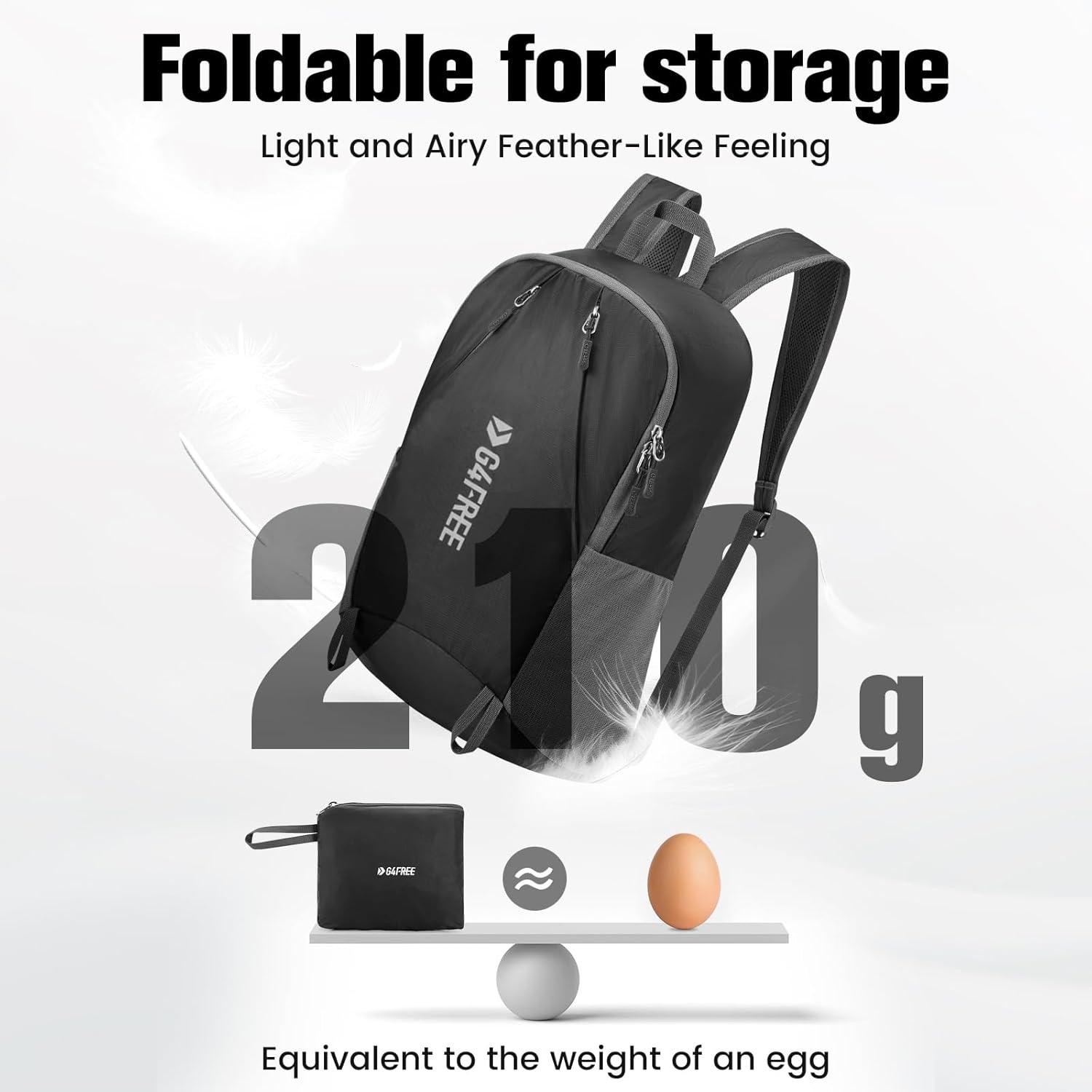 DURABLE AND LIGHTWEIGHT: The hiking bag is made of high-quality tear-resistant 210D polyamide material, which will effectively prevent branches or stones from scratching the backpack. It weighs only 0.46 LB and feels like it's nothing held in your hands