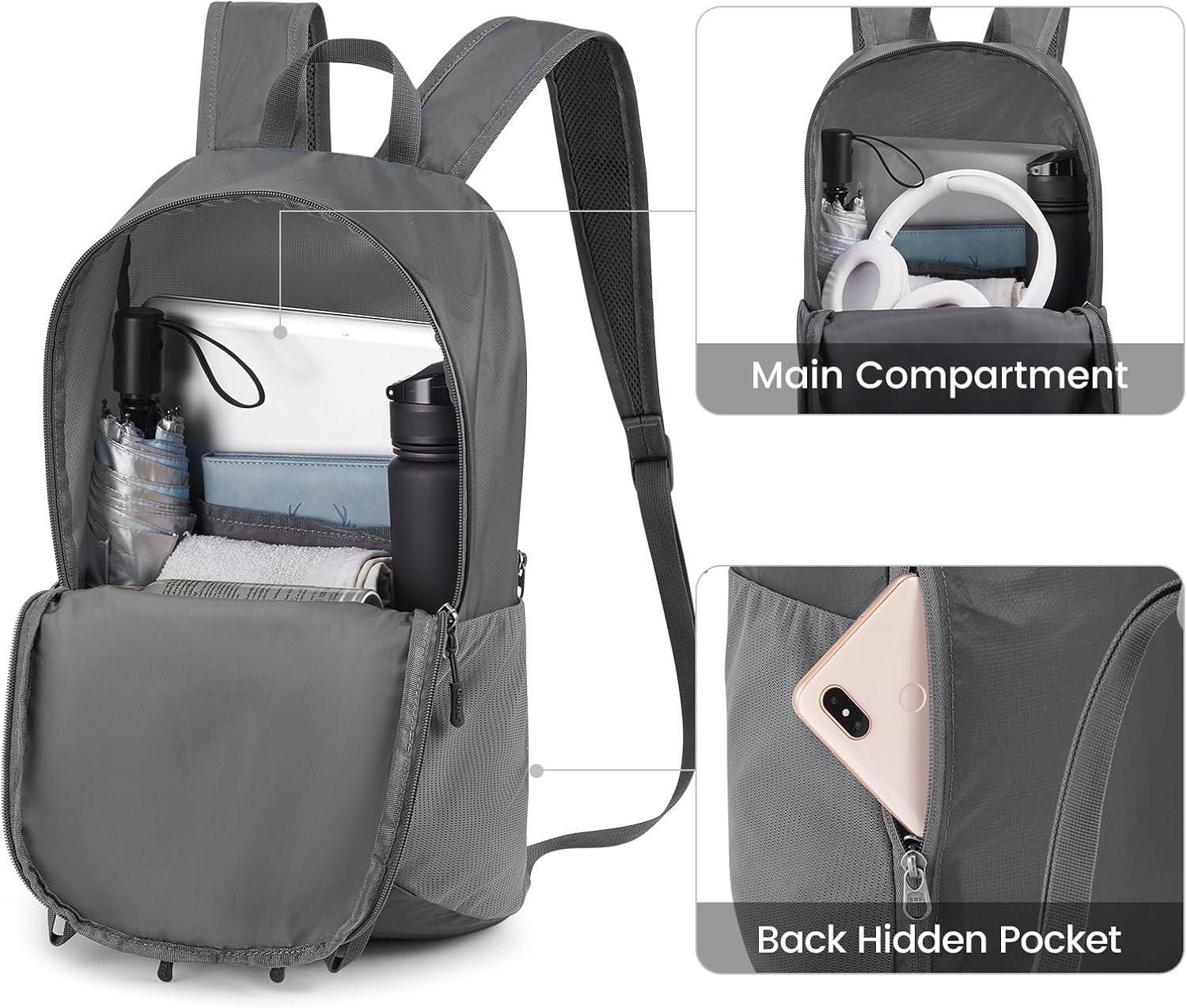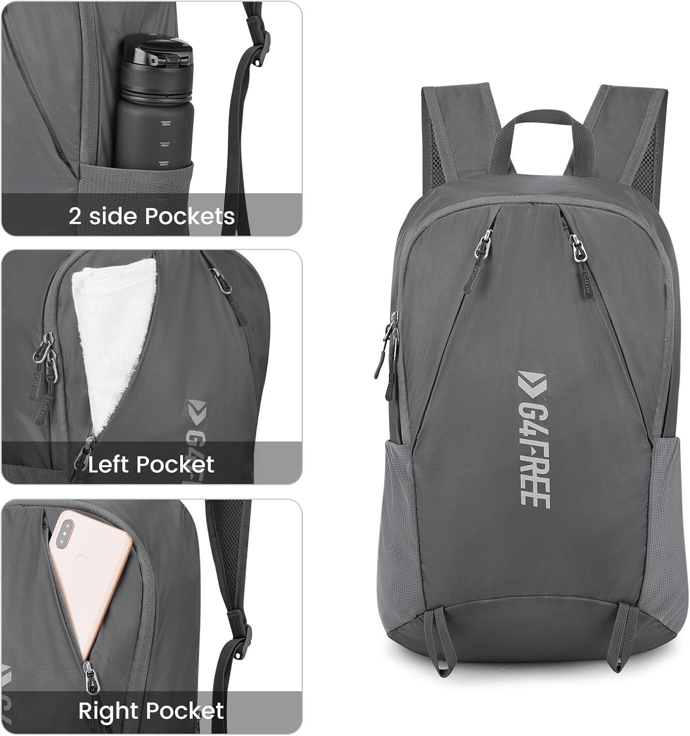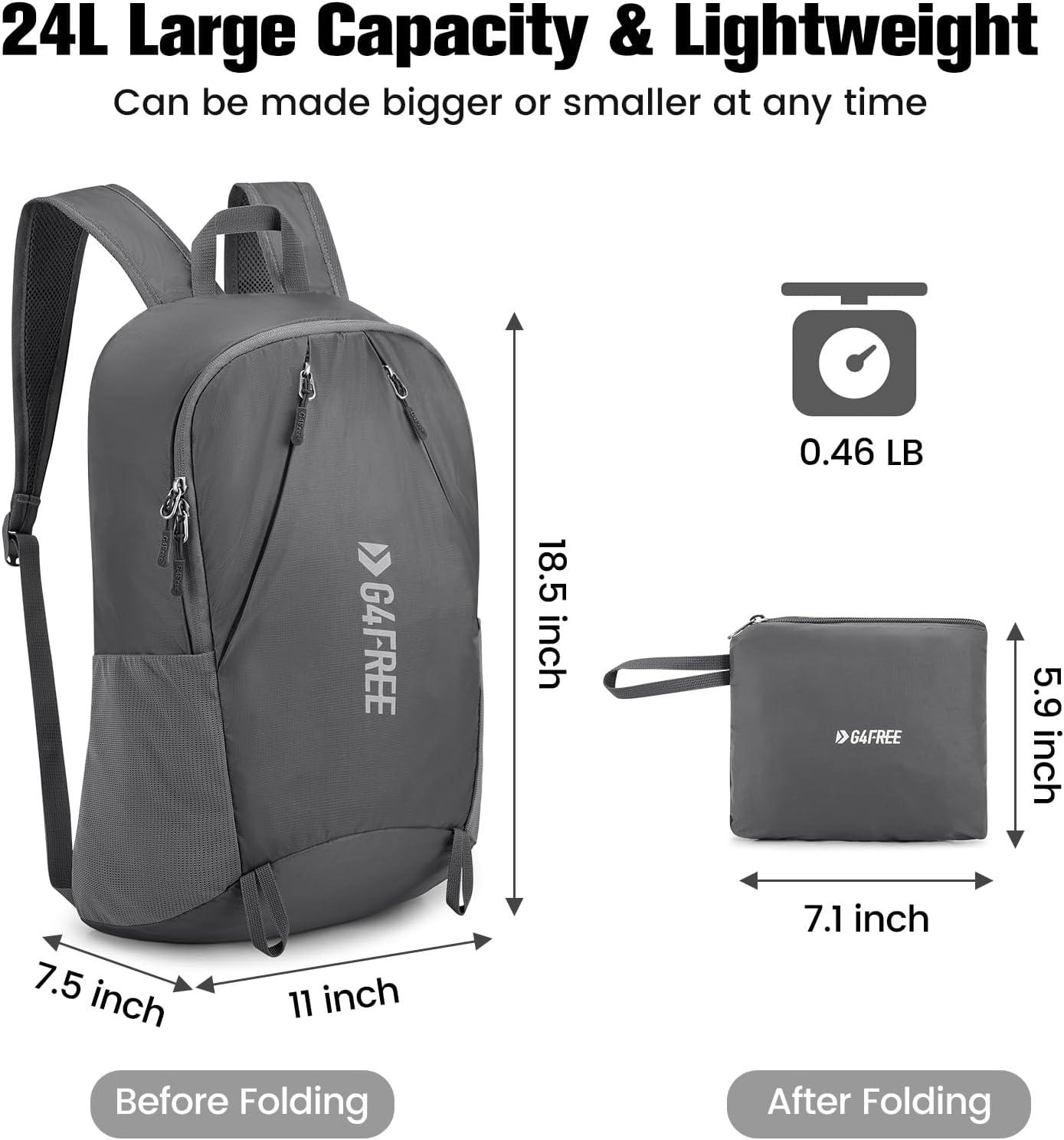 G4Free 24L Packable Hiking Backpack Lightweight Foldable Small Sport Travel Daypack Water Resistant for Women Men(Dark Grey)