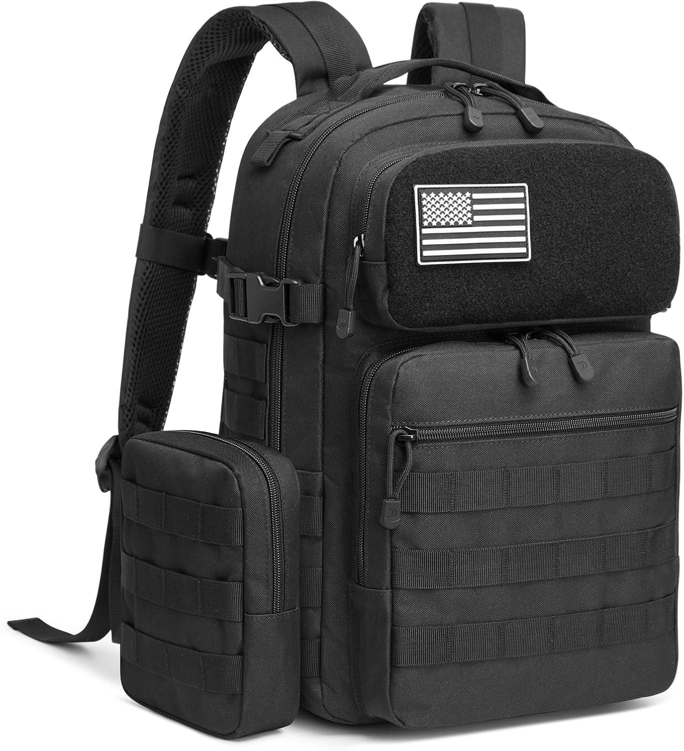 G4Free 25L Small Backpack Fits 15" Laptop, Tactical Work Back Pack Travel Bag for Men, Black(Black)
