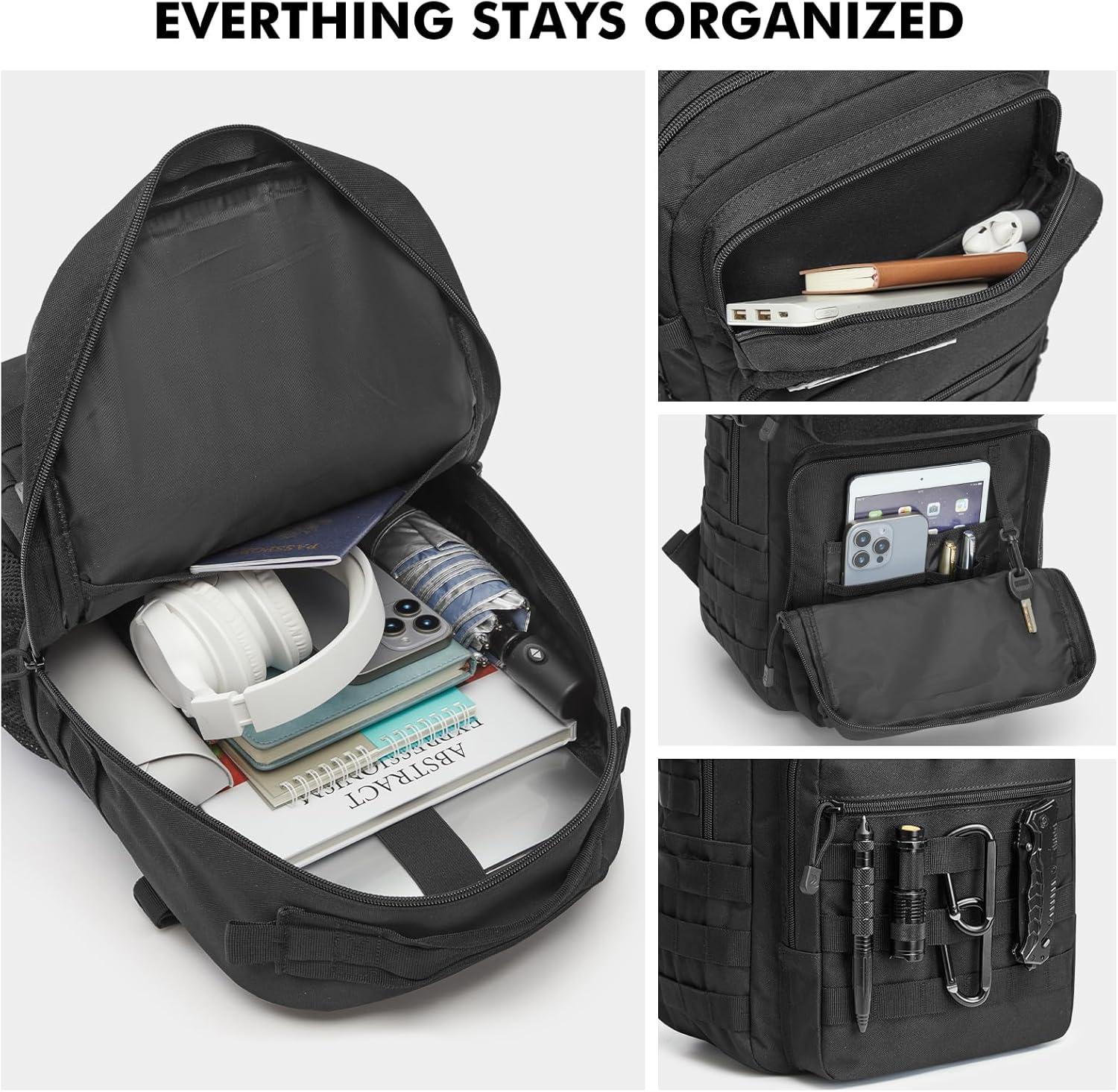 G4Free 25L Small Backpack Fits 15″ Laptop, Tactical Work Back Pack Travel Bag for Men, Black(Black)