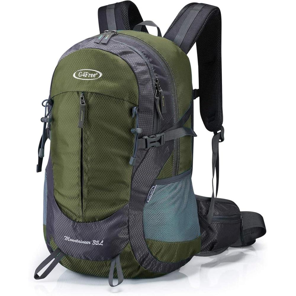 imageG4Free 35L Hiking Backpack Water Resistant Outdoor Sports Travel Daypack Lightweight with Rain Cover for Women Men Peacock GreenArmy Green