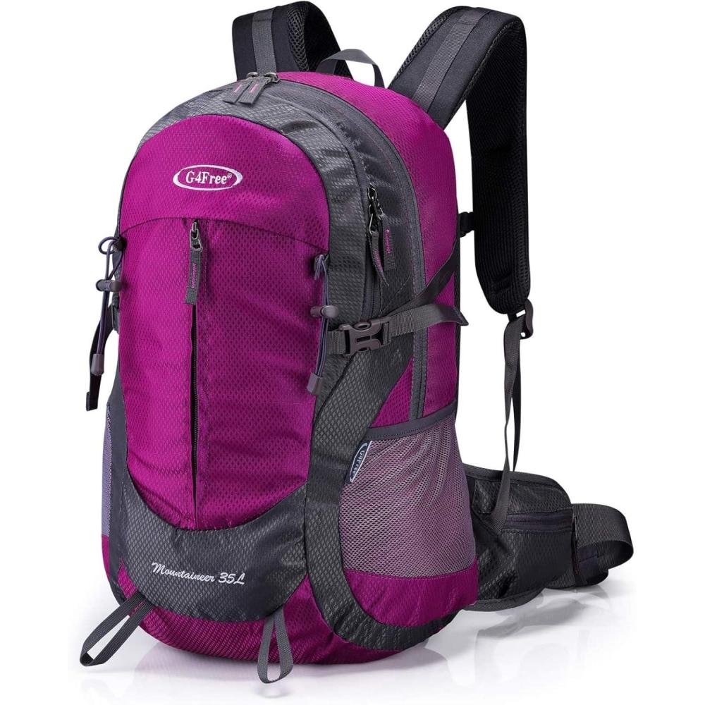 G4Free 35L Hiking Backpack Water Resistant Outdoor Sports Travel Daypack Lightweight with Rain Cover for Women Men (Peacock Green)(Rose Red)