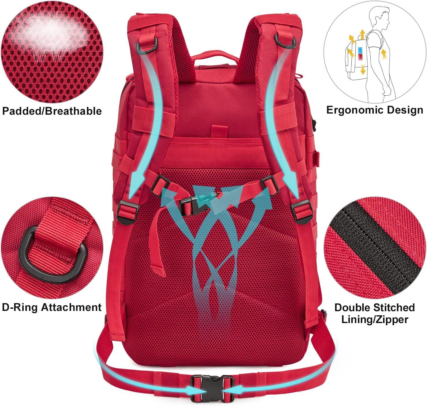 G4Free 45L Military Tactical Backpack 3 Day Assault Survival Molle Pack Bug Out Bag Travel Fishing Backpack Rucksack(Red)