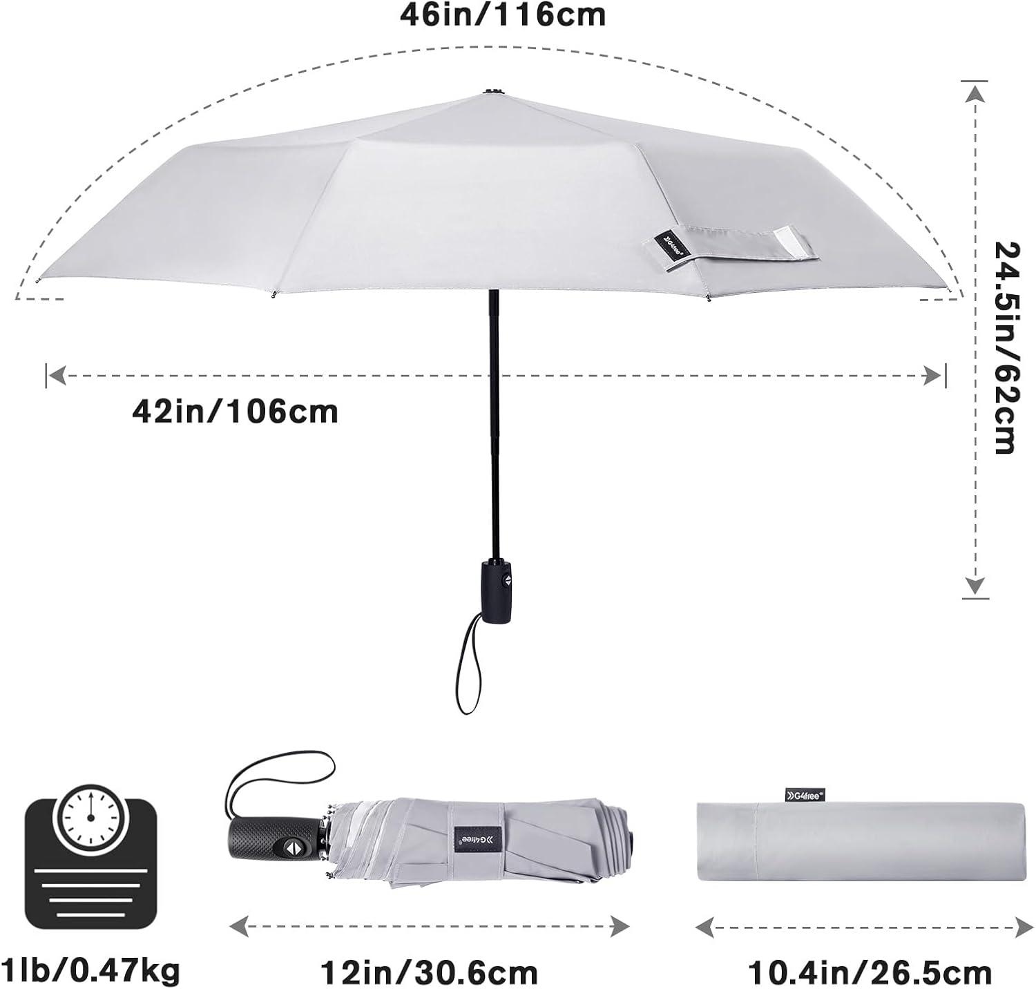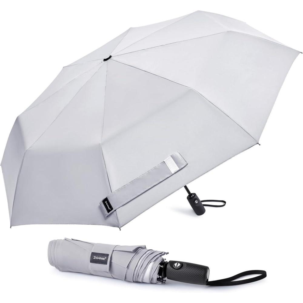 G4Free 46 Inch Reflective Travel Umbrella for Rain Large Windproof Auto Open Close Folding Compact Umbrellas, Strong Fiberglass Frame for Men Women(Plain)