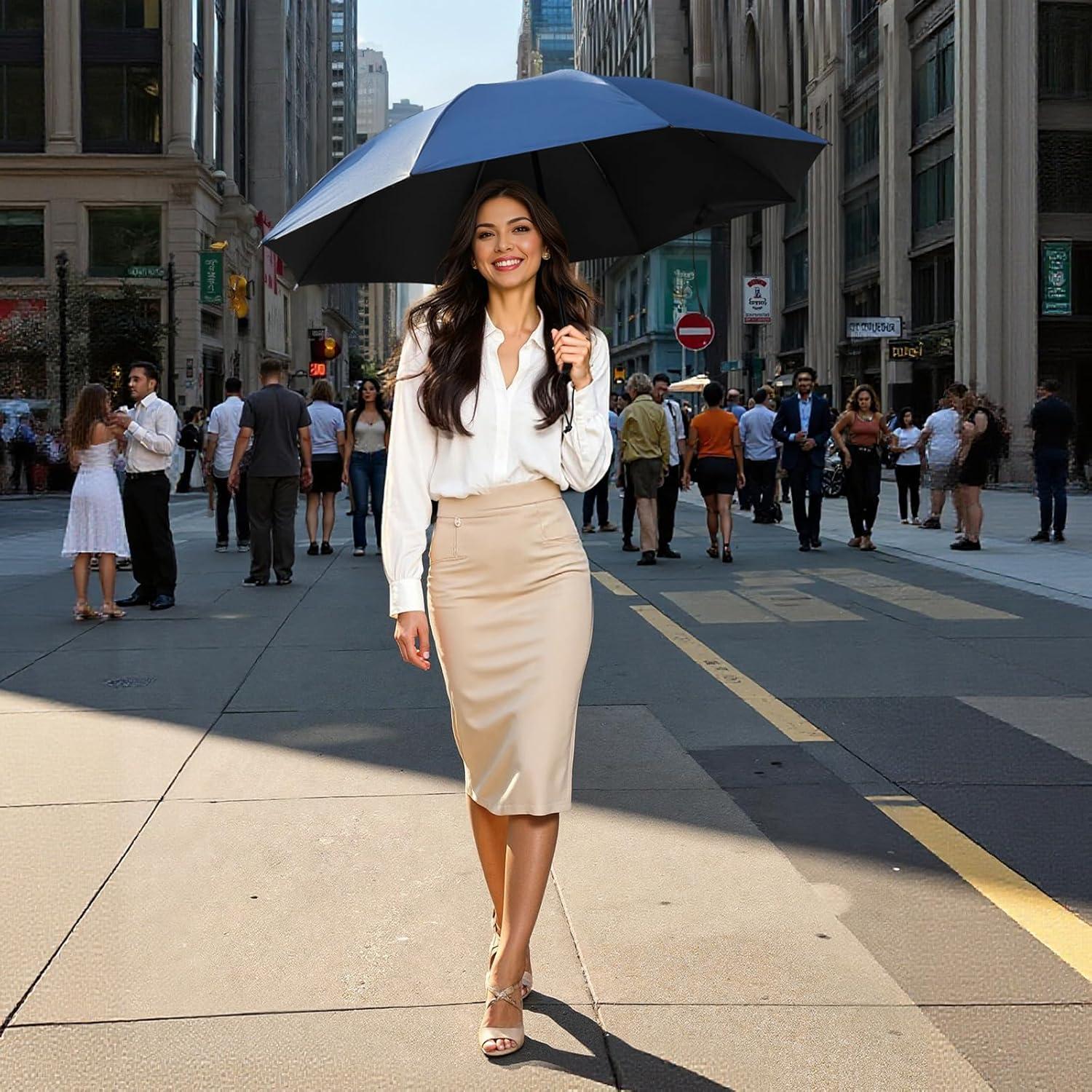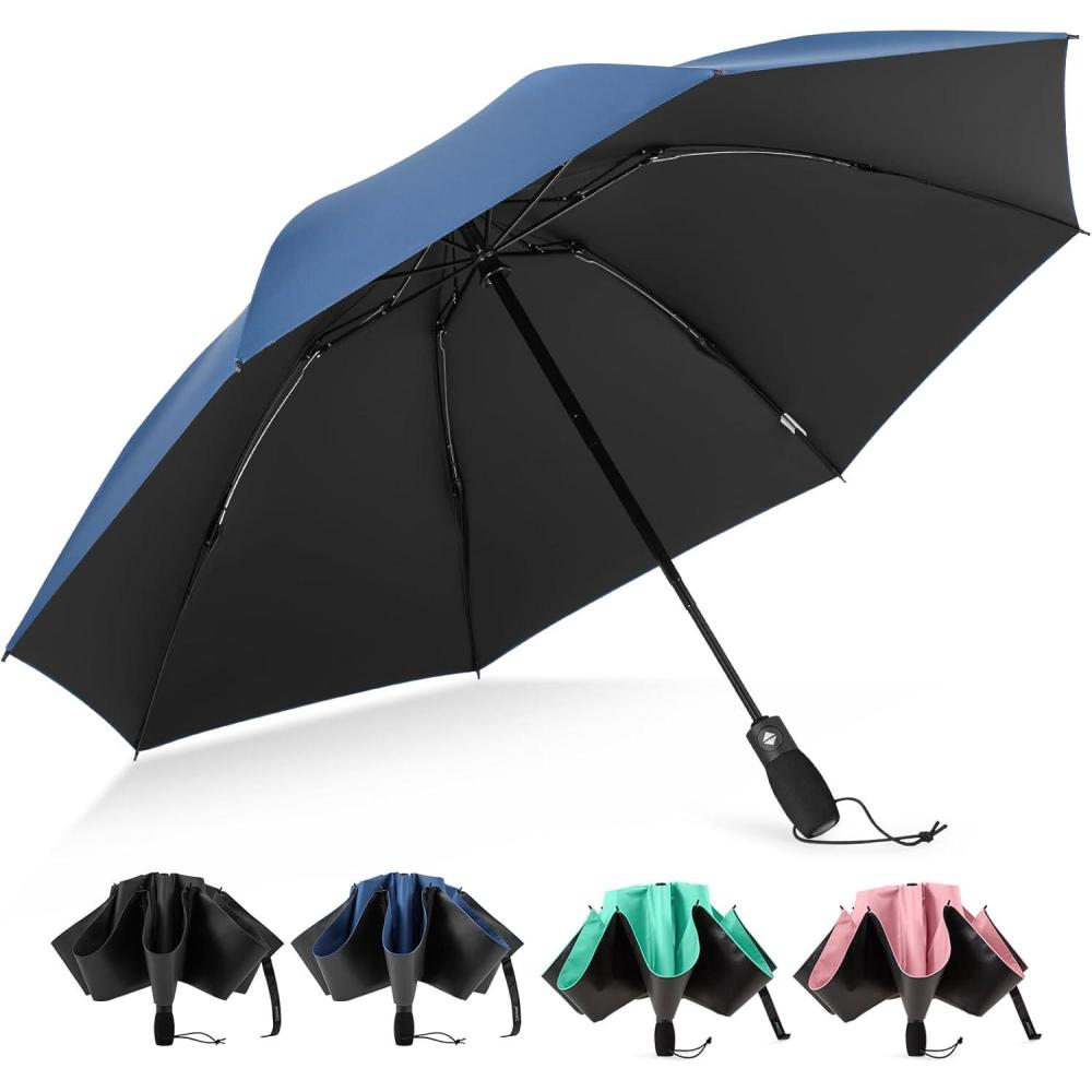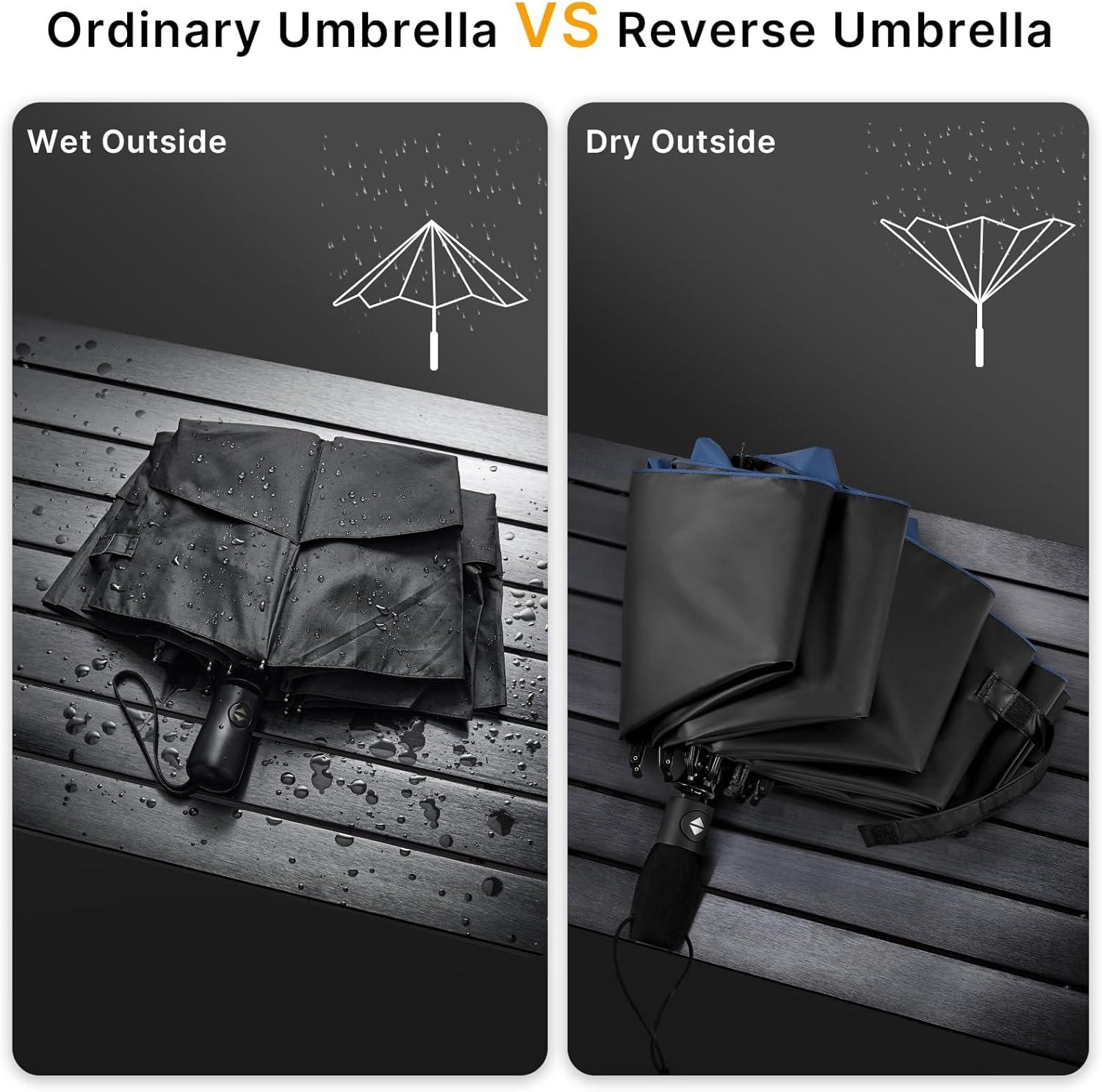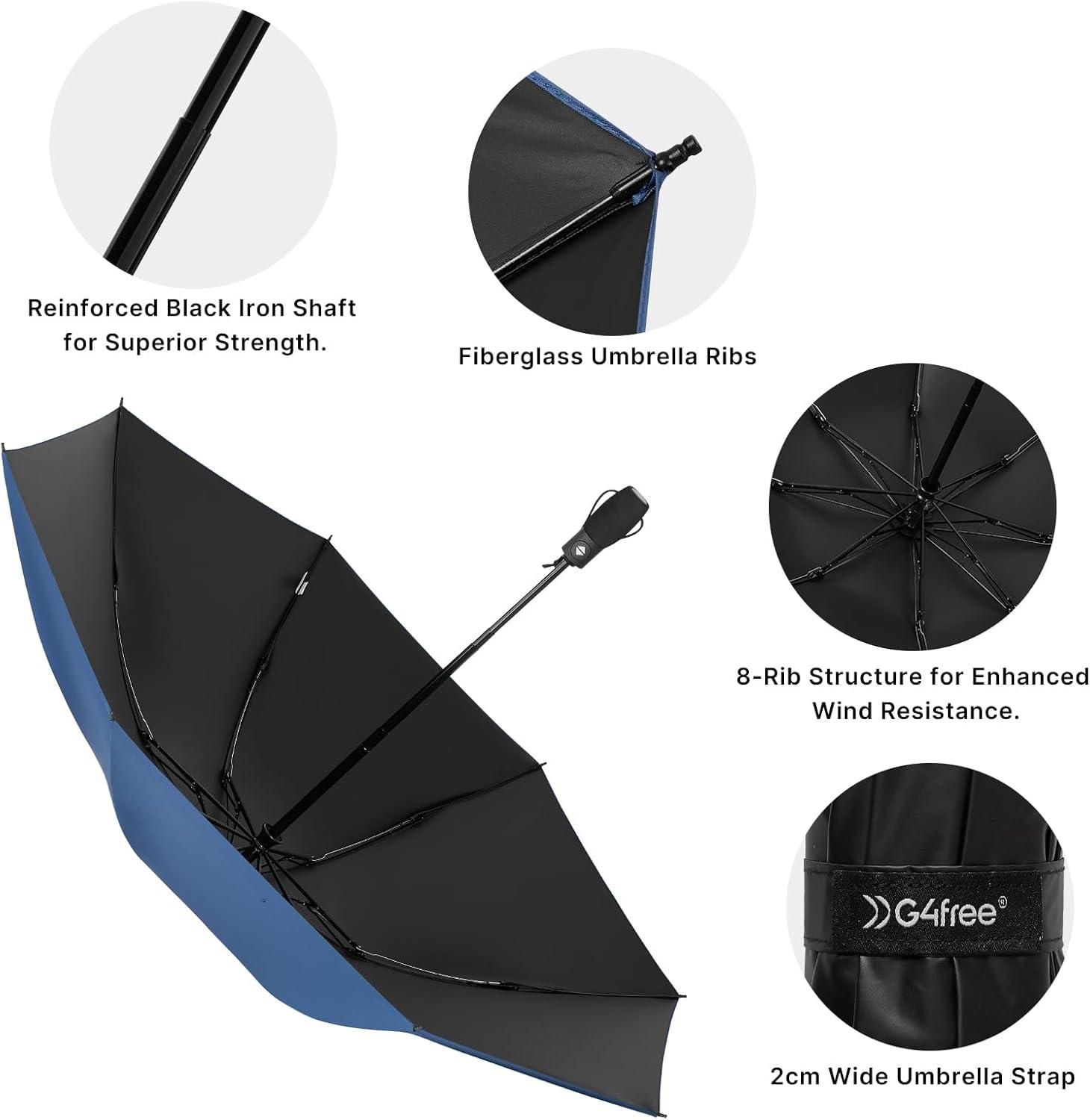 G4Free 46 Inch Windproof Umbrella for Rain Strong 8 Ribs Compact Reverse Folding Travel Umbrella Automatic Open Close Fits Car & Backpack(Blue)