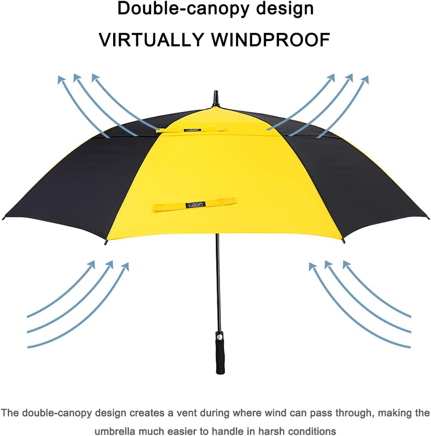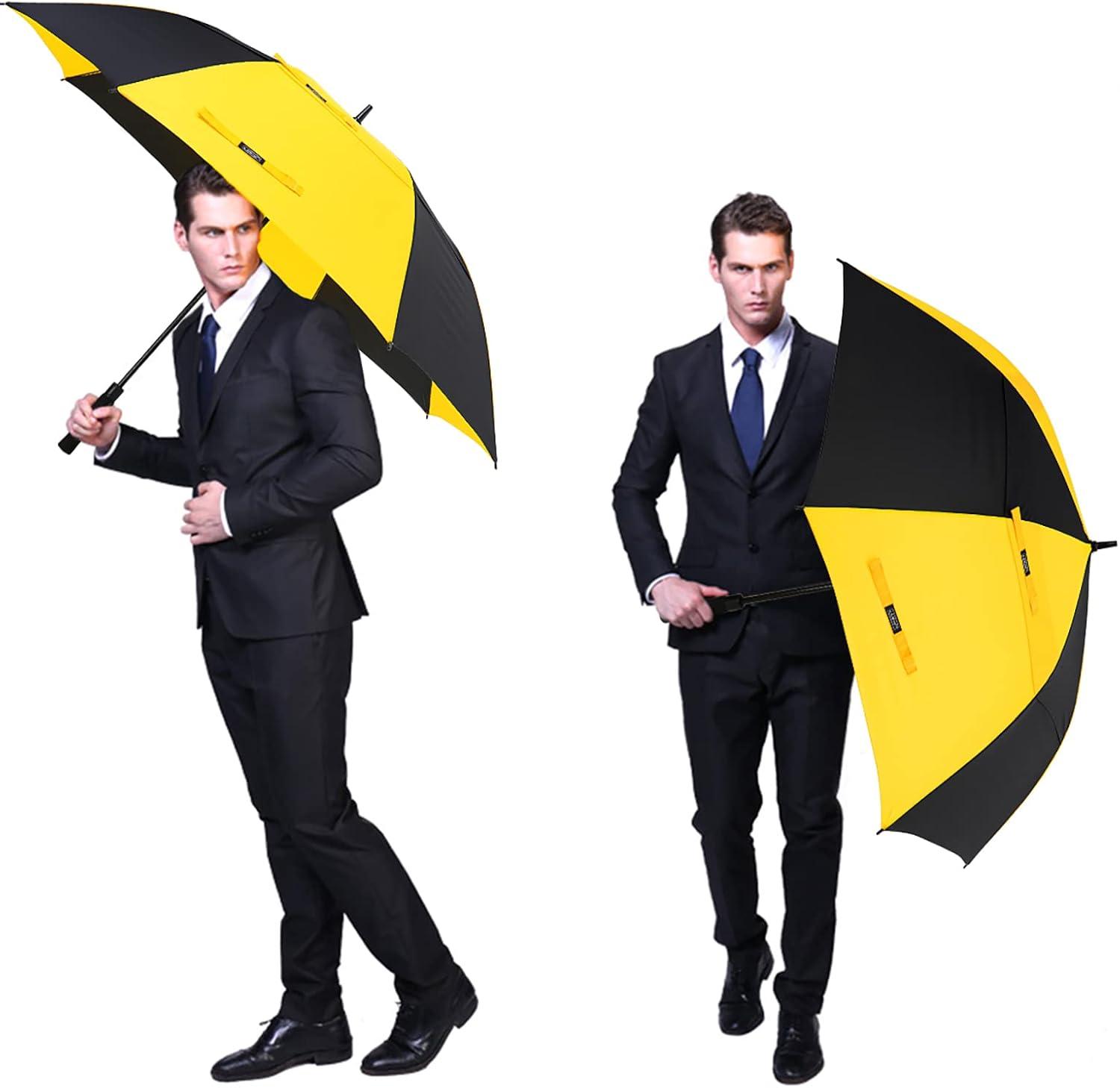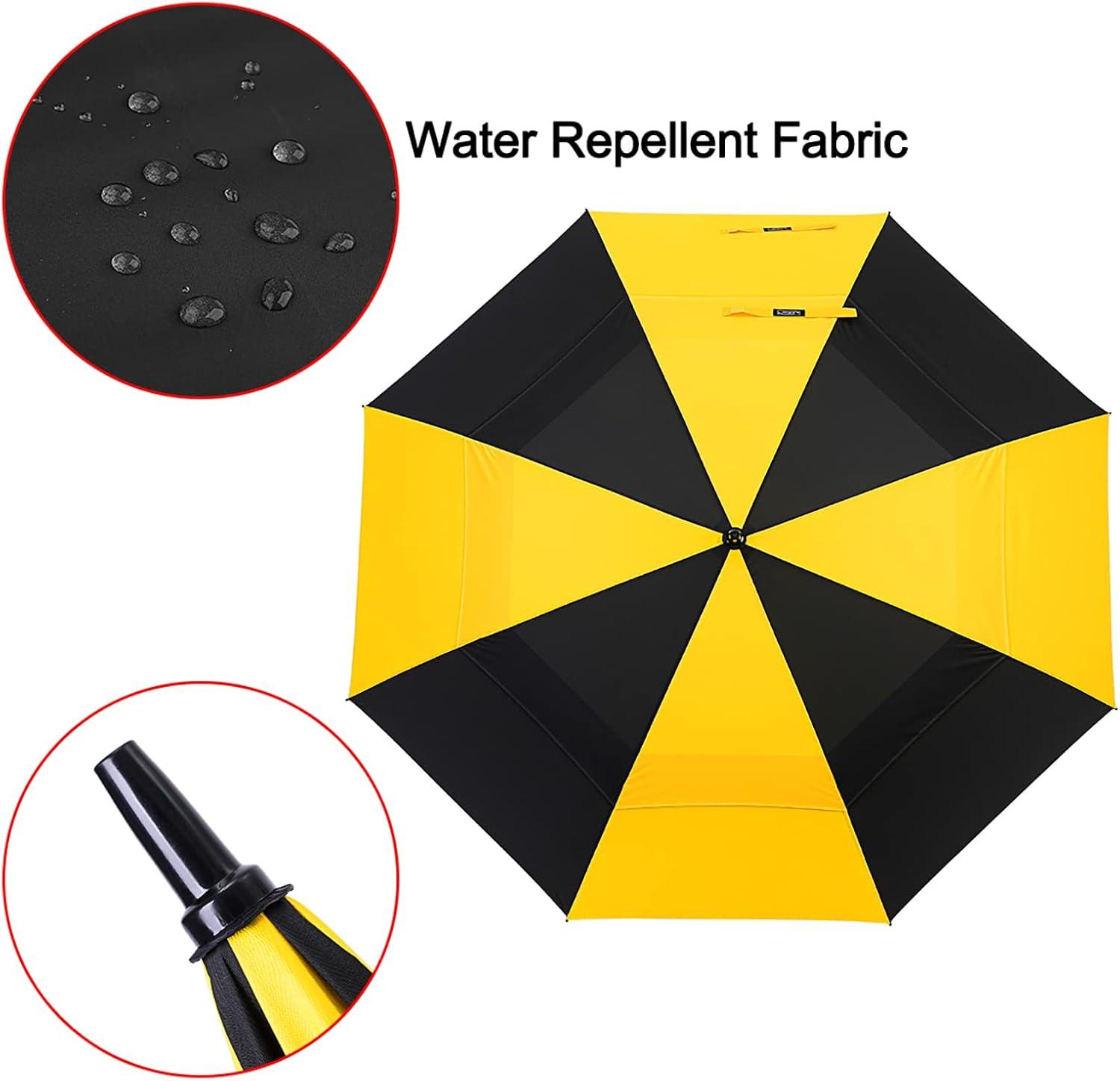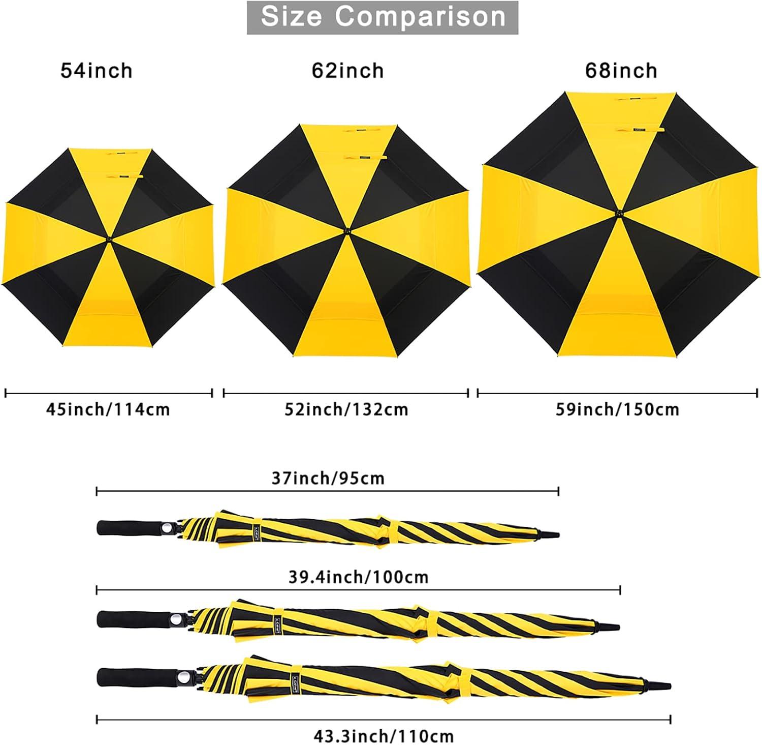 G4Free 47/54/62/68 Inch Automatic Open Golf Umbrella Oversize Extra Large Double Canopy Vented Windproof Waterproof Stick Umbrellas(Black/Yellow)