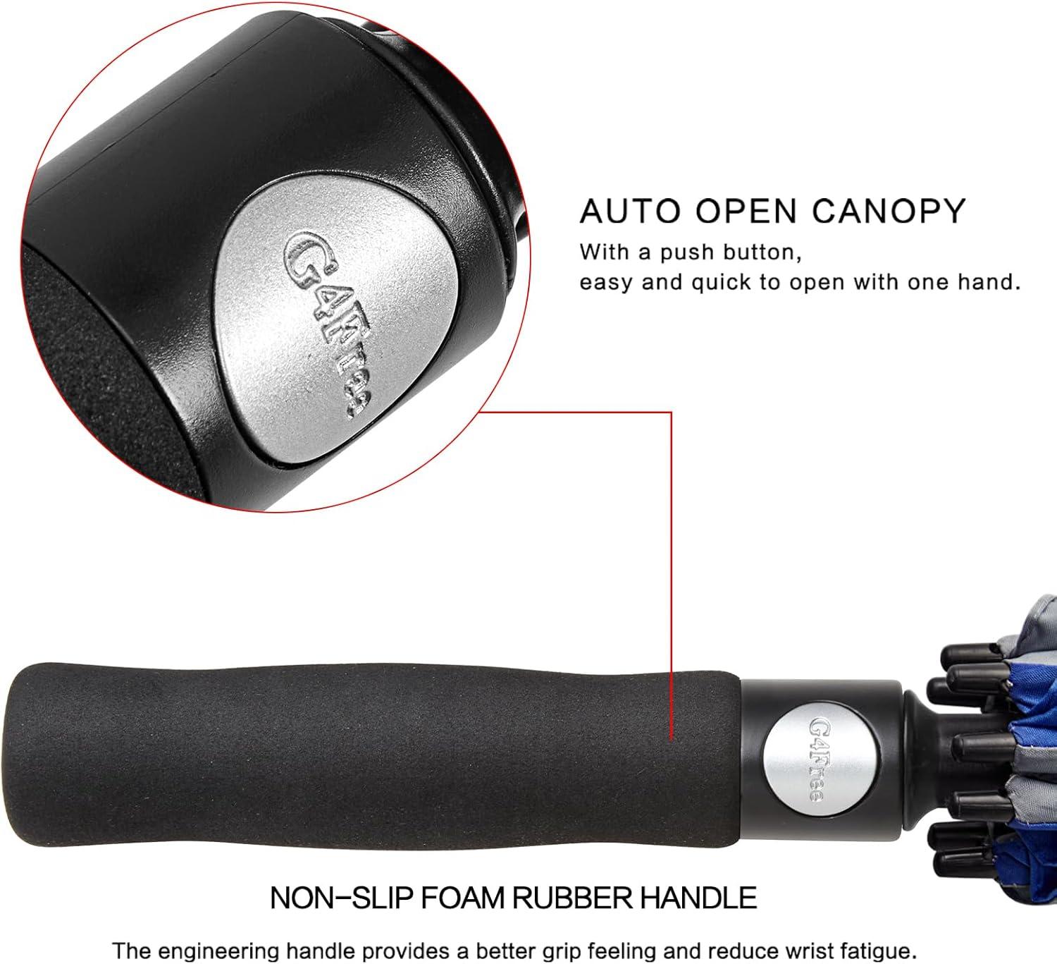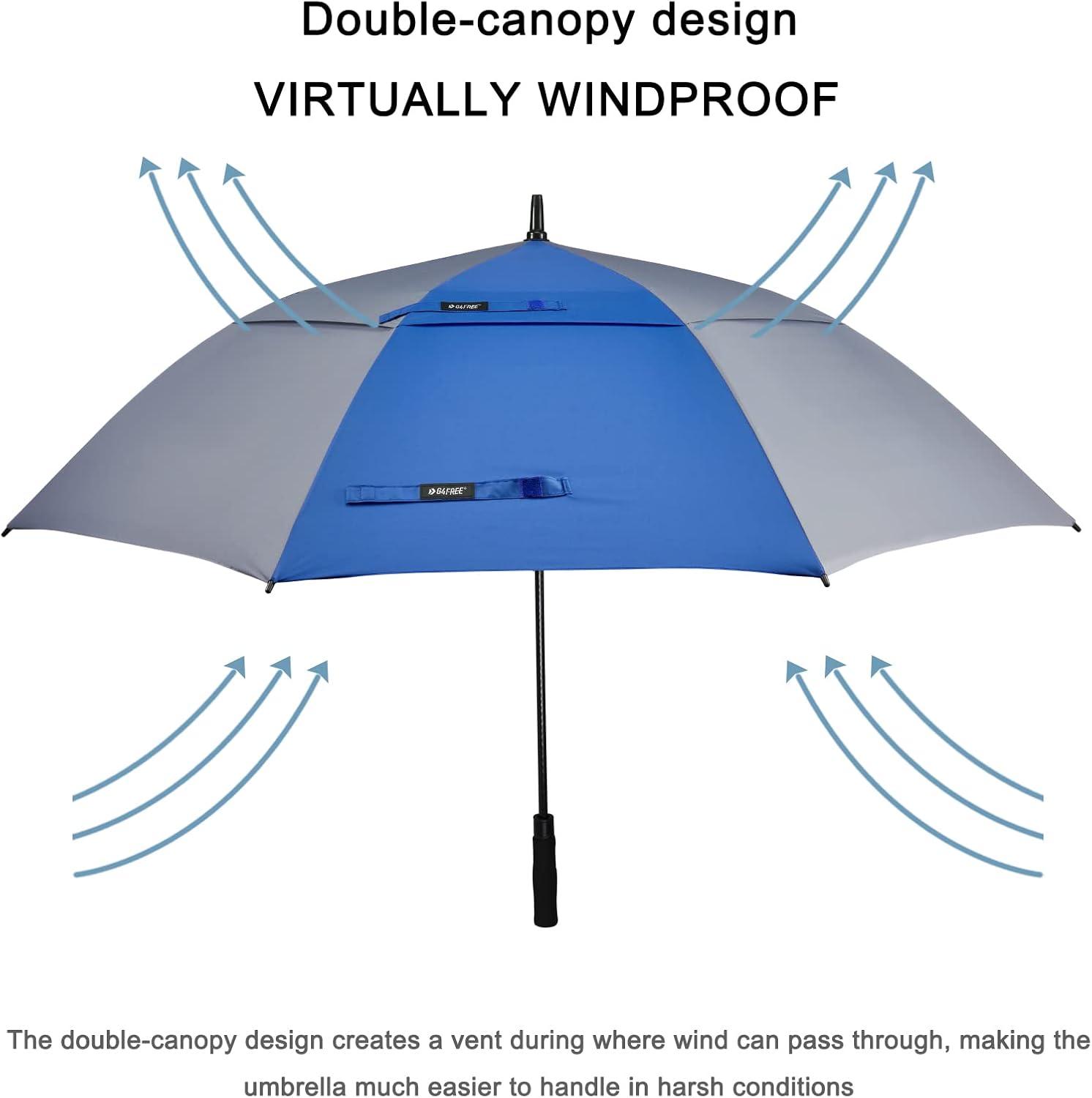 THE ULTIMATE GOLF UMBRELLA With a 47/54/62/68-inch canopy and heavy-duty design, the G4Free Ultimate Golf Umbrella is an ideal companion for golfers, and business professionals, or for daily life. With its sleek all-black design, comfortable EVA grip, sturdy frame, and auto open mechanism, the G4Free Ultimate Golf Umbrellas are perfect in a metropolitan city or a sports field!