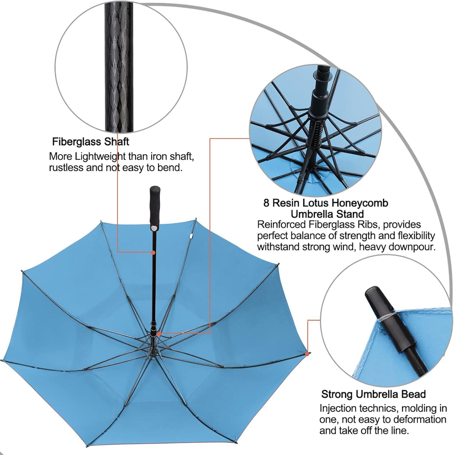 imageG4Free 47546268 Inch Automatic Open Golf Umbrella Oversize Extra Large Double Canopy Vented Windproof Waterproof Stick UmbrellasSky Blue