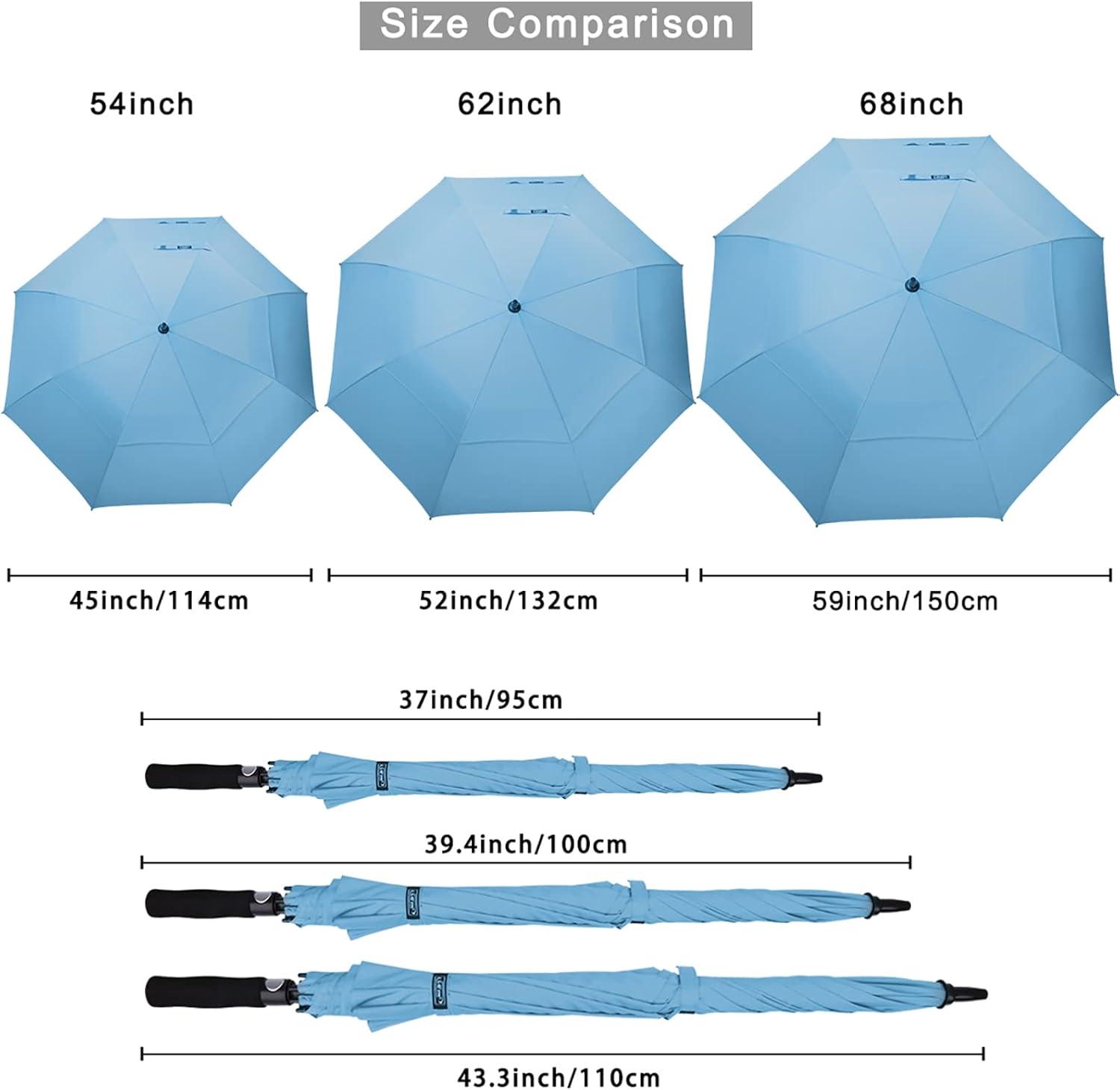 G4Free 47/54/62/68 Inch Automatic Open Golf Umbrella Oversize Extra Large Double Canopy Vented Windproof Waterproof Stick Umbrellas(Sky Blue)