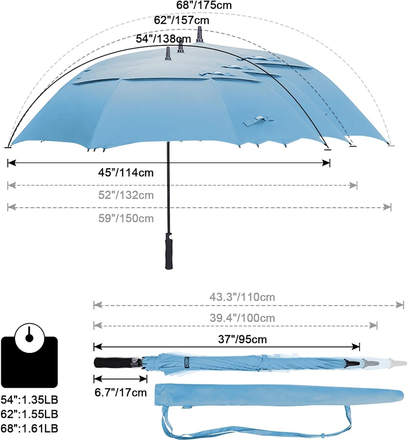 THE ULTIMATE GOLF UMBRELLA With a 47/54/62/68-inch canopy and heavy-duty design, the G4Free Ultimate Golf Umbrella is an ideal companion for golfers, and business professionals, or for daily life. With its sleek all-black design, comfortable EVA grip, sturdy frame, and auto open mechanism, the G4Free Ultimate Golf Umbrellas are perfect in a metropolitan city or a sports field!