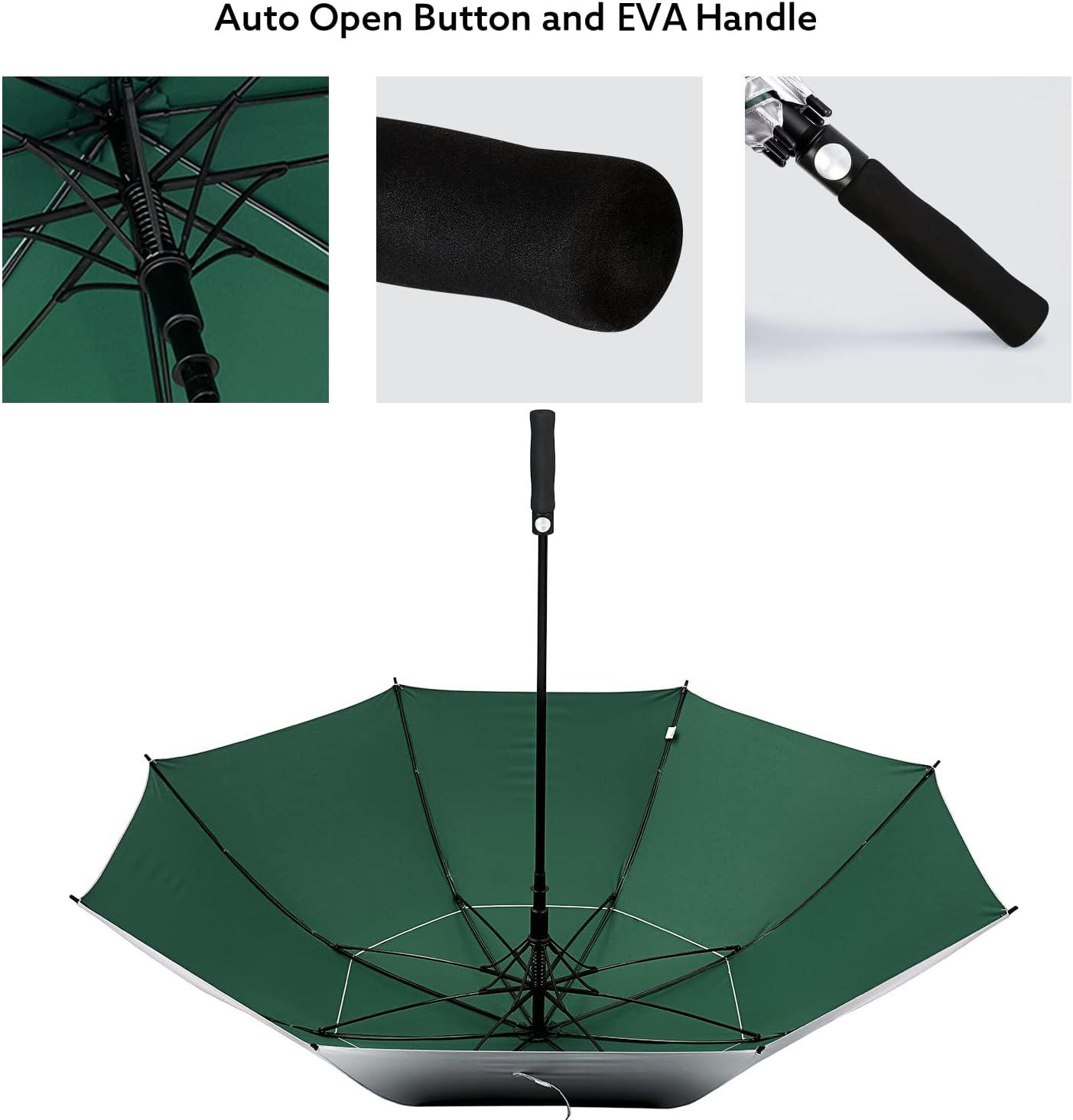 G4Free 47/54/62/68 Inch UV Protection Golf Umbrella Auto Open Vented Double Canopy Oversize Extra Large Windproof Sun Rain Umbrellas(Green/Silver)