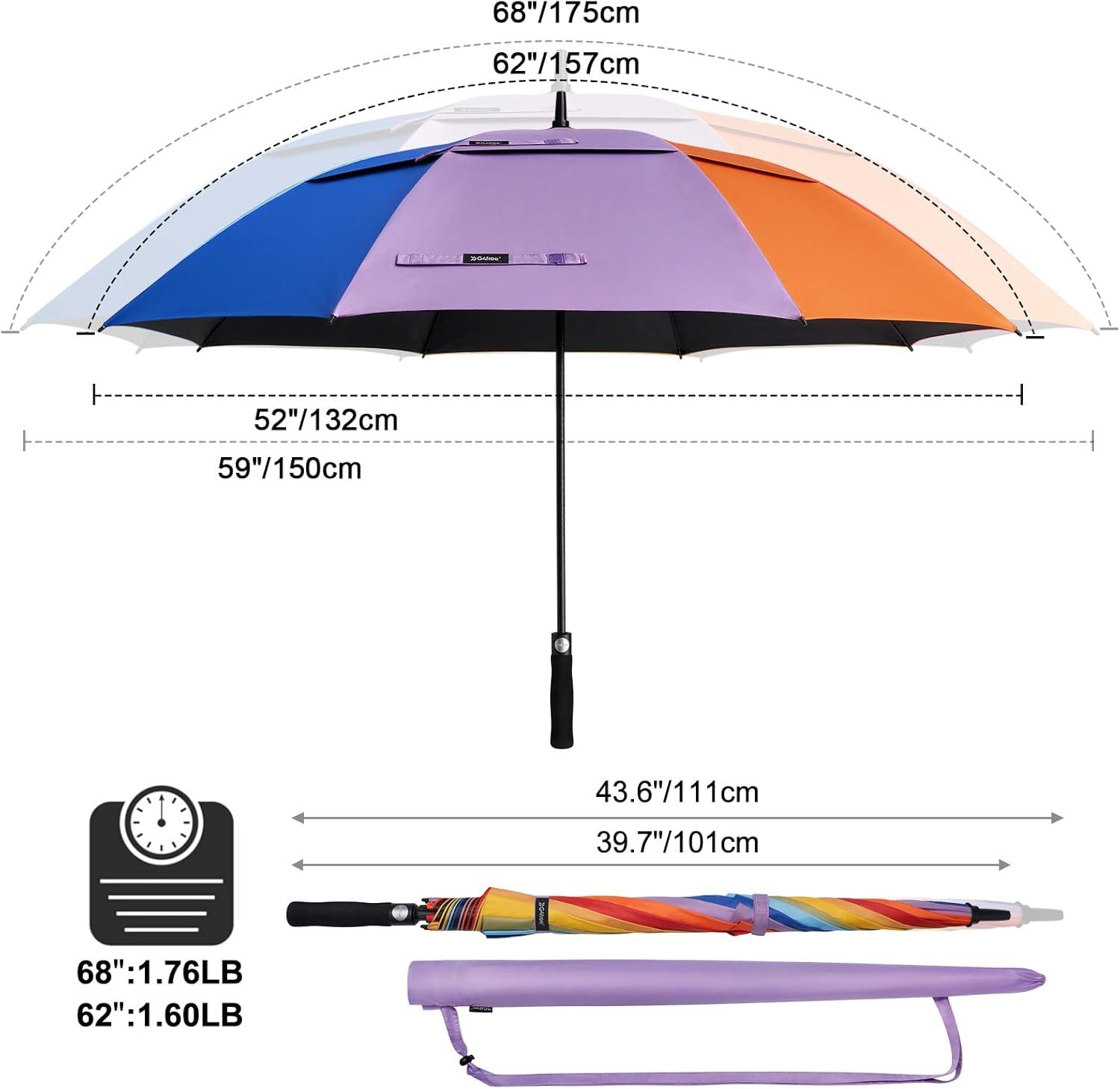 G4Free 47/54/62/68 Inch UV Protection Golf Umbrella Auto Open Vented Double Canopy Oversize Extra Large Windproof Sun Rain Umbrellas(Rainbow/Black)