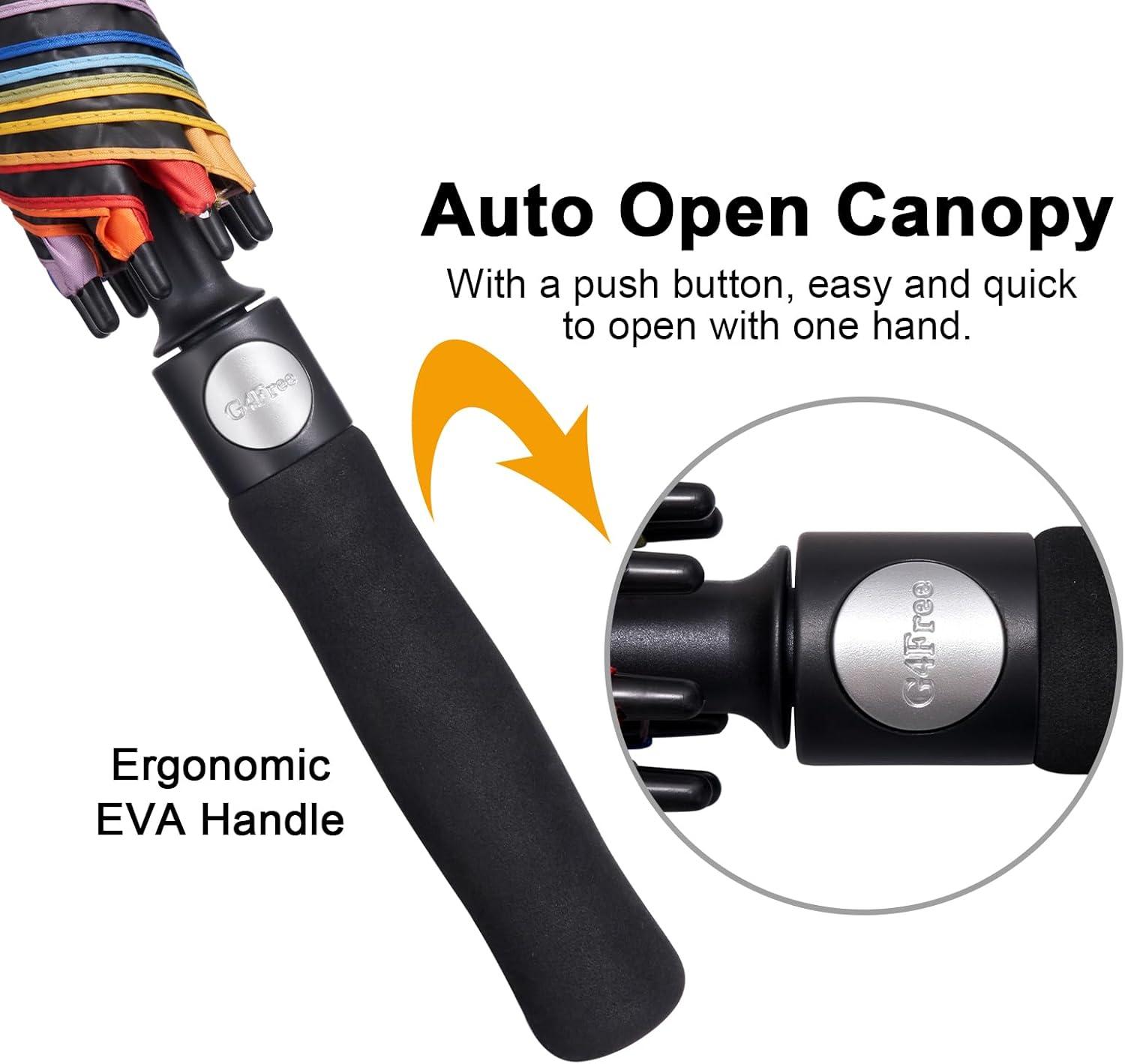 imageG4Free 47546268 Inch UV Protection Golf Umbrella Auto Open Vented Double Canopy Oversize Extra Large Windproof Sun Rain UmbrellasRainbowBlack