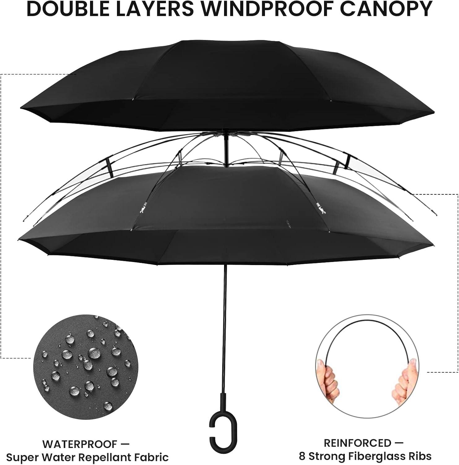 G4Free 48/62 Inch Large Inverted Reverse Umbrella with C-Shaped Handle, Windproof Double Layer Upside Down Car Rain Umbrellas for Men Women(Black)