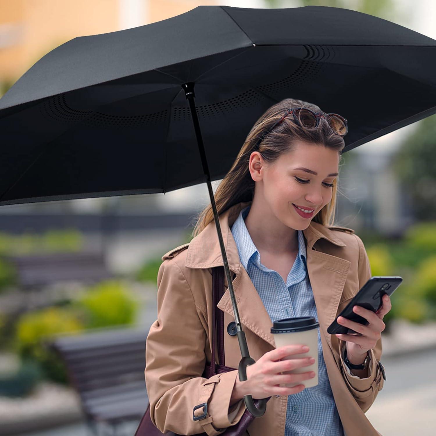 Buy with Confidence: This large reverse umbrella is made of 100% polyester and rustless metal, which is strong and durable. We stand behind the durability of our goods with strict craftsmanship and provide a warranty of 12 months.