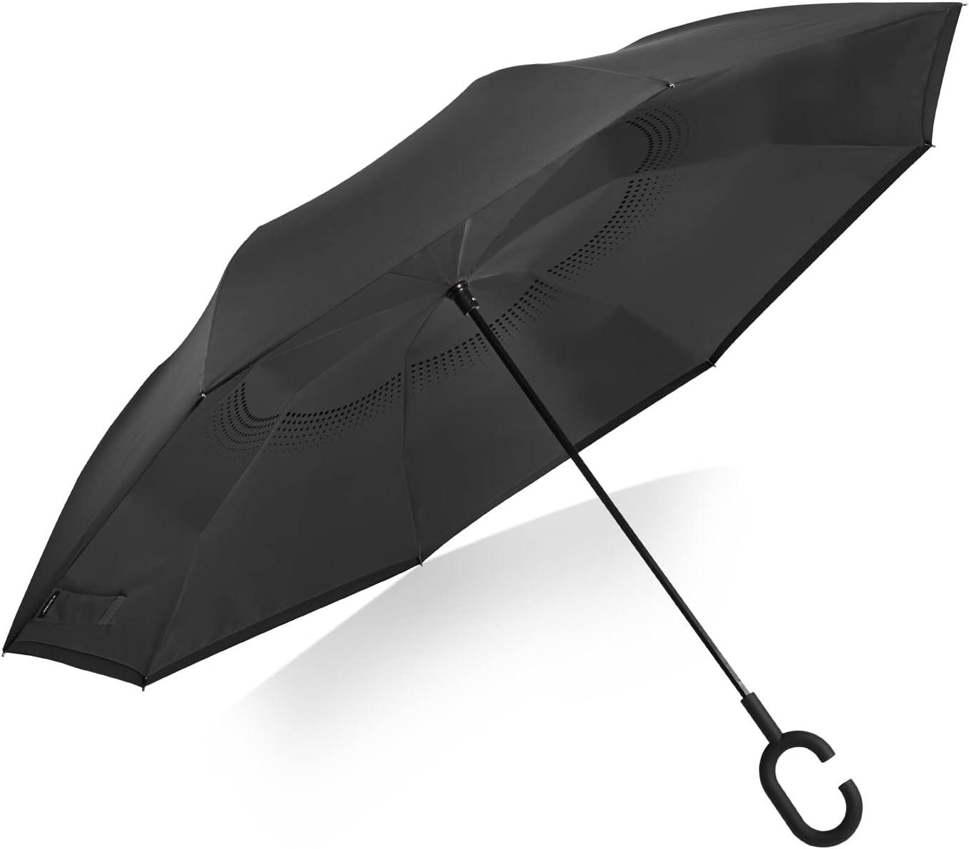 imageG4Free 4862 Inch Large Inverted Reverse Umbrella with CShaped Handle Windproof Double Layer Upside Down Car Rain Umbrellas for Men WomenBlack