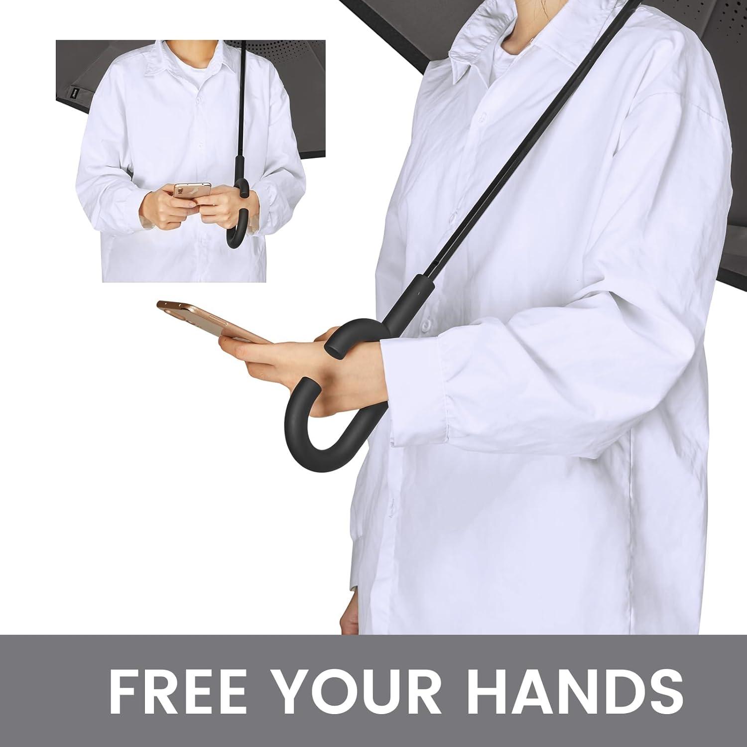Ergonomic C-shaped Handle: Free your hands to multitask. Cross the C handle over your arm, making your hands free to answer the phone, or hold coffee or shopping bags in the rain. Also, the handle with a frosted texture is comfortable to grip.