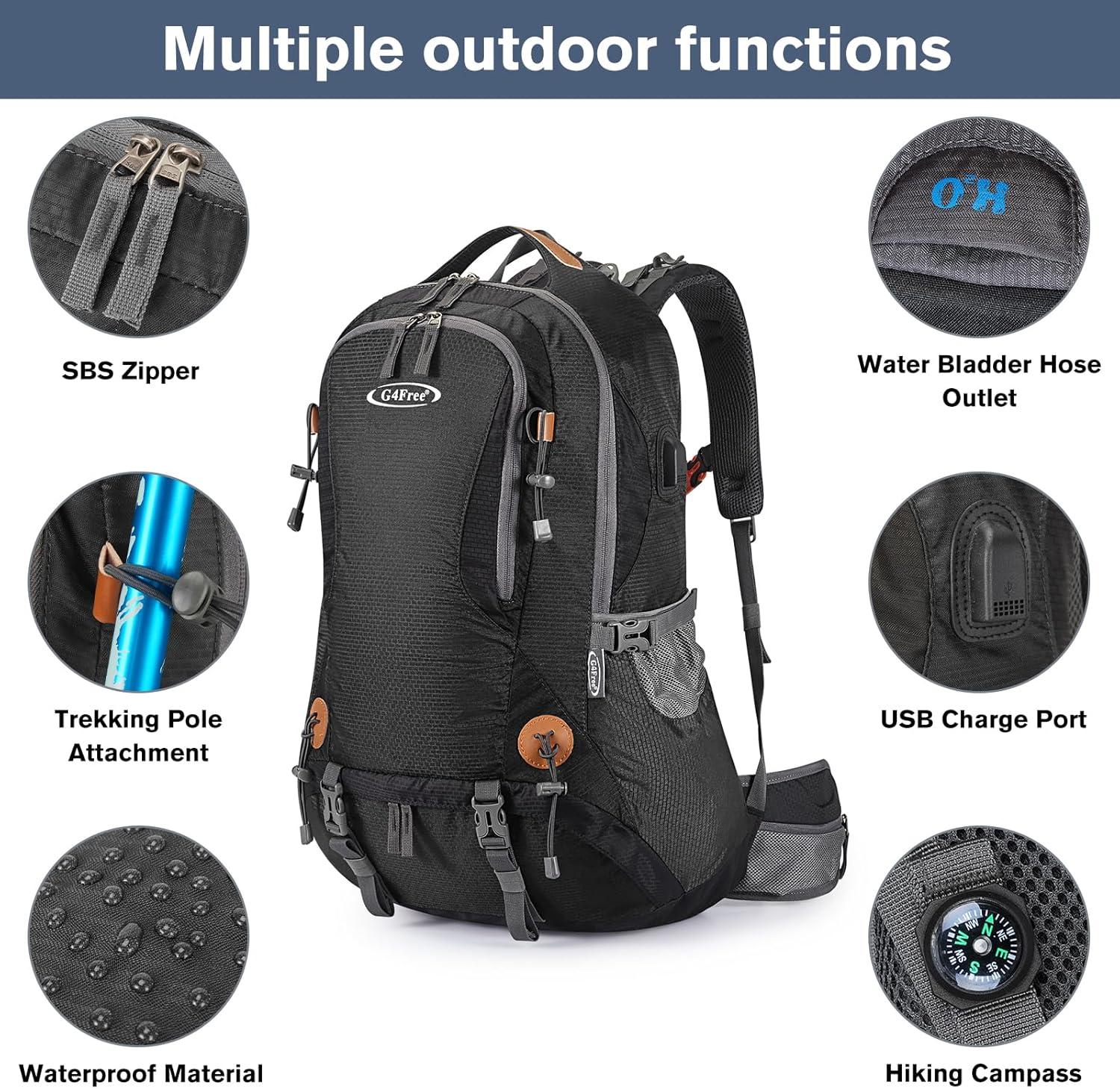 G4Free 50L Hiking Backpack Waterproof Daypack Outdoor Camping Climbing Backpack with Rain Cover for Men Women(Black01)