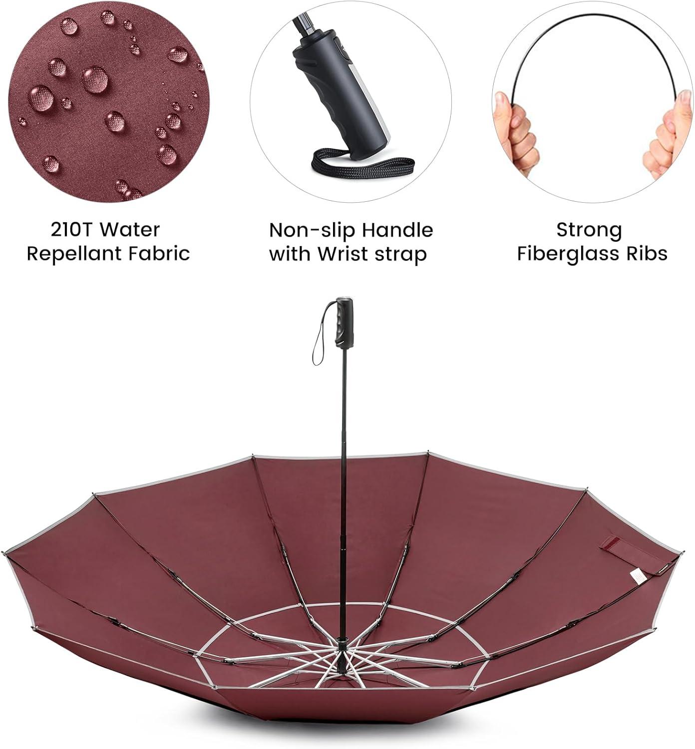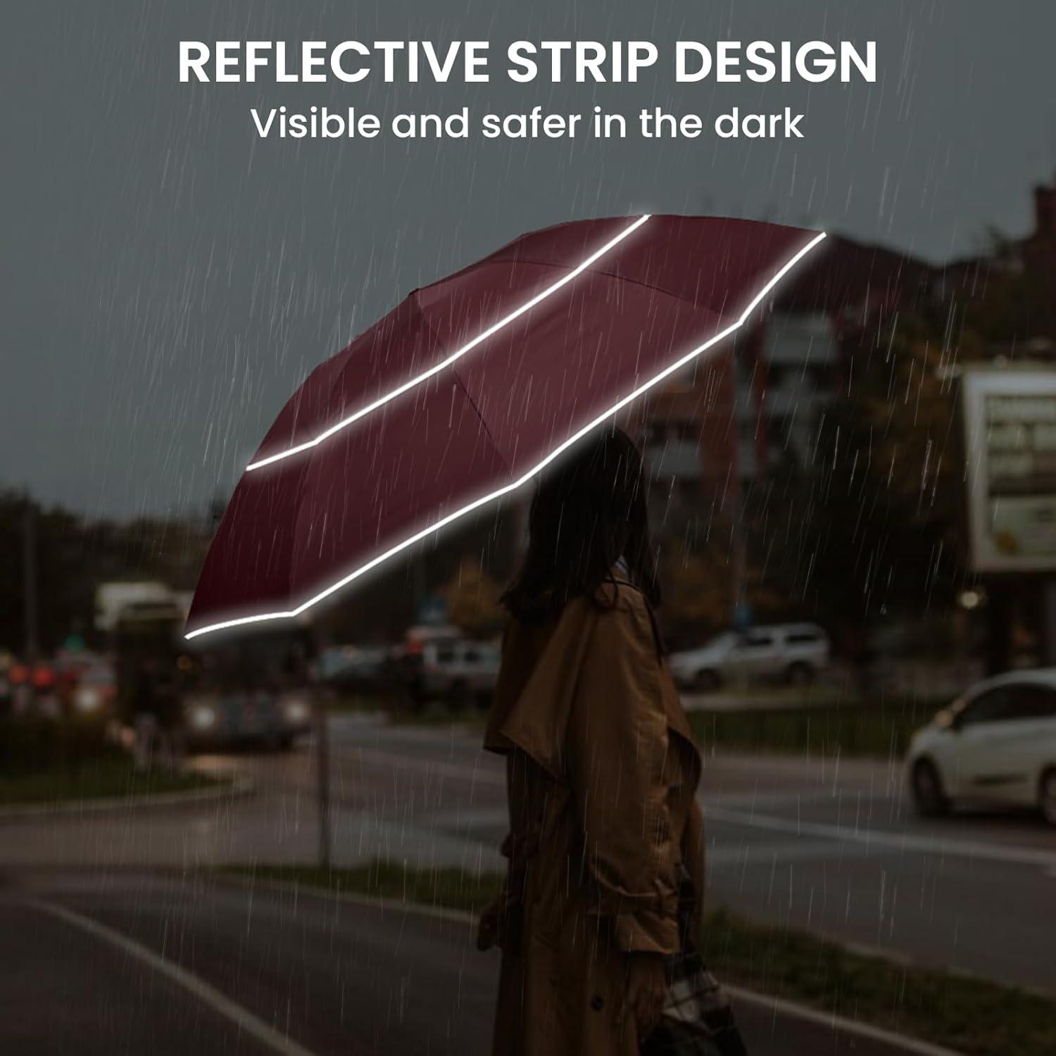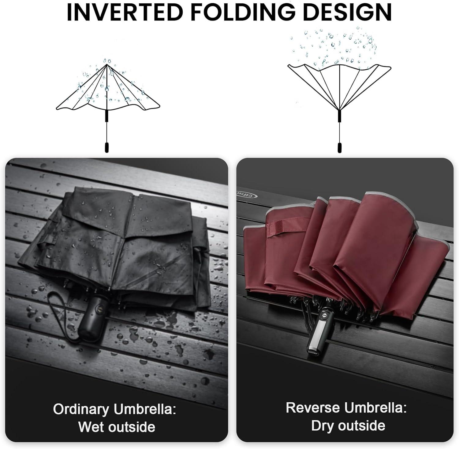 imageG4Free 5462 Inch Windproof Inverted Umbrella with Reflective Stripe Large Compact Reverse Golf Umbrella for Rain 10 Ribs Double Canopy Travel Umbrella Automatic Open CloseBurgundy