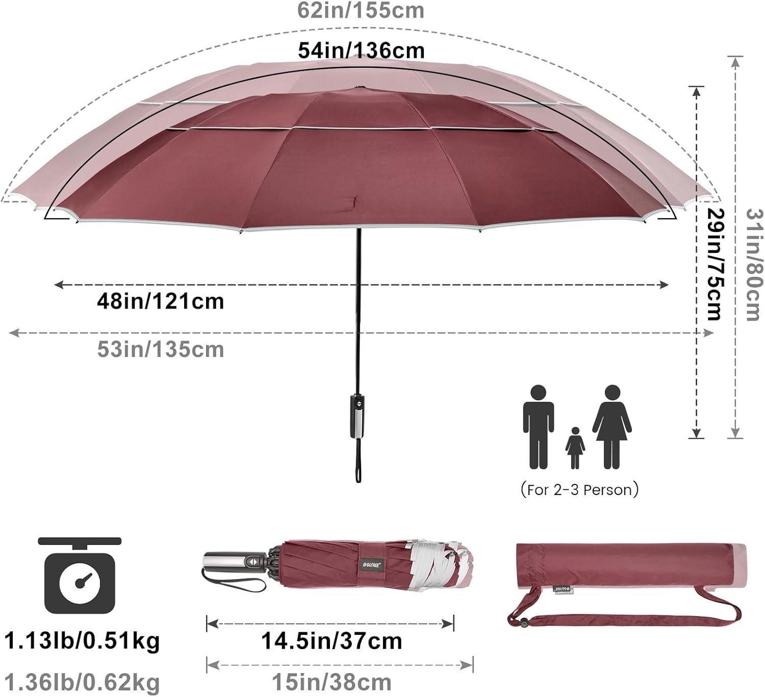 G4Free 54/62 Inch Windproof Inverted Umbrella with Reflective Stripe Large Compact Reverse Golf Umbrella for Rain 10 Ribs Double Canopy Travel Umbrella Automatic Open Close(Burgundy)