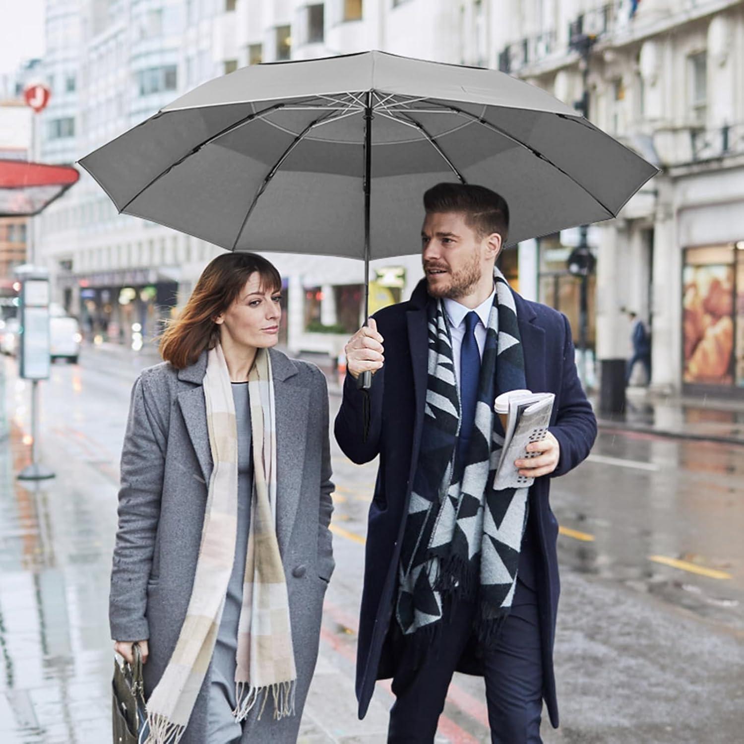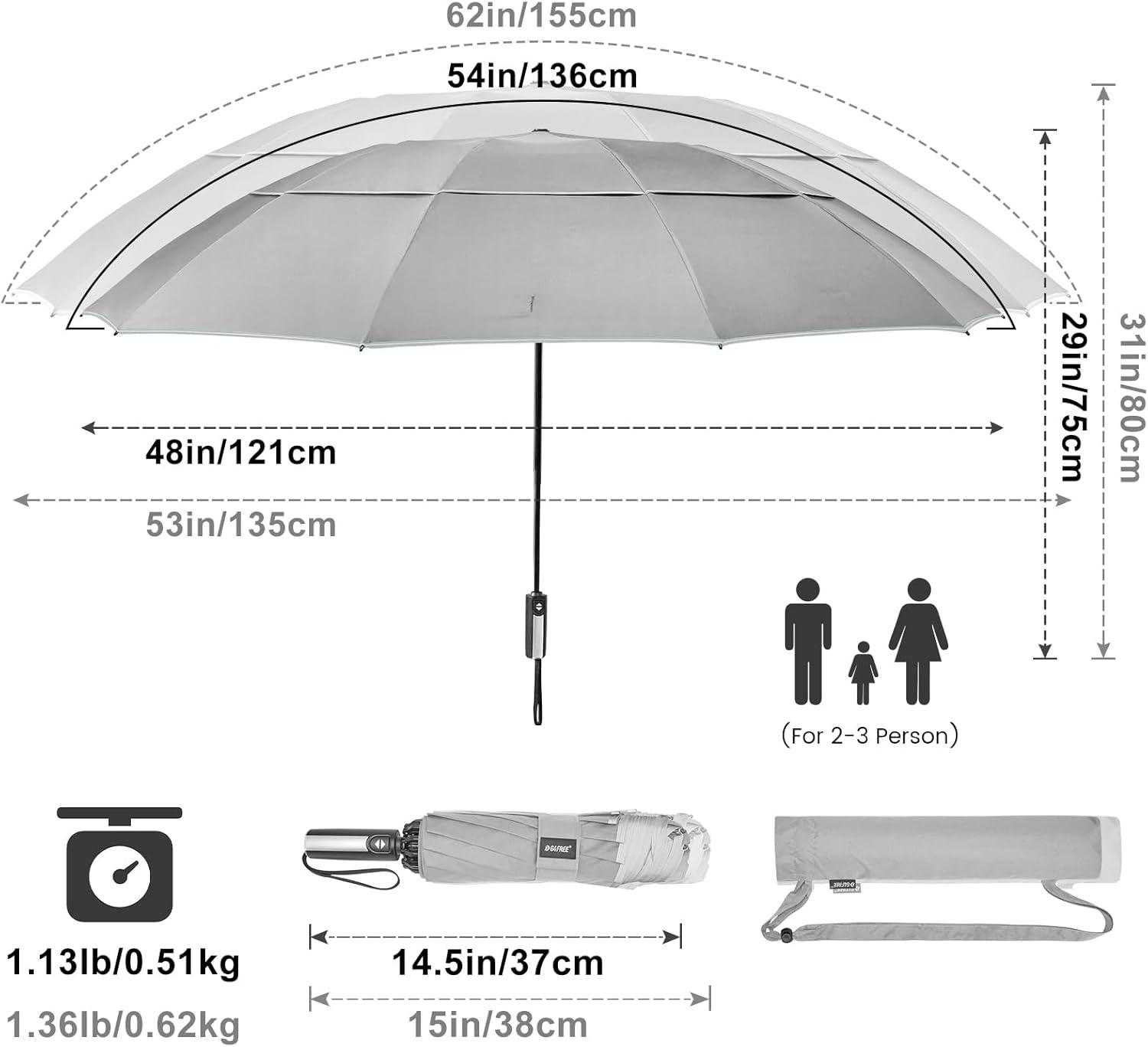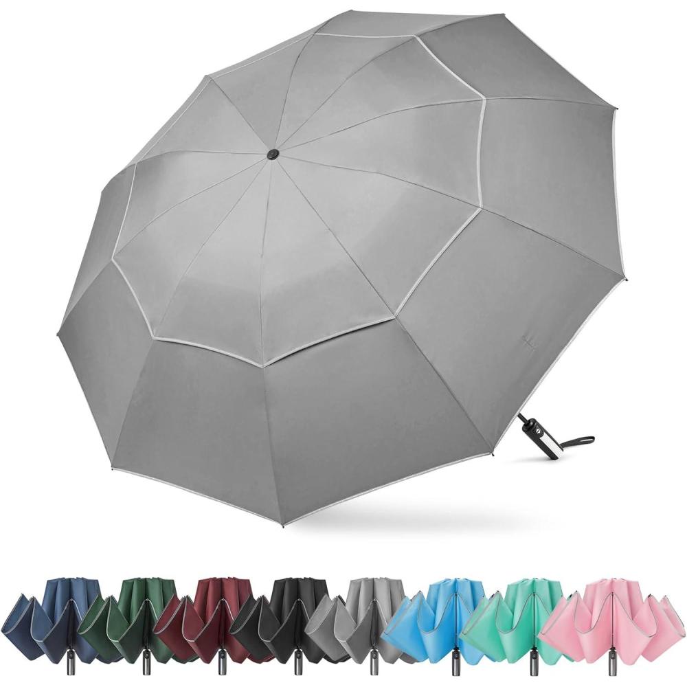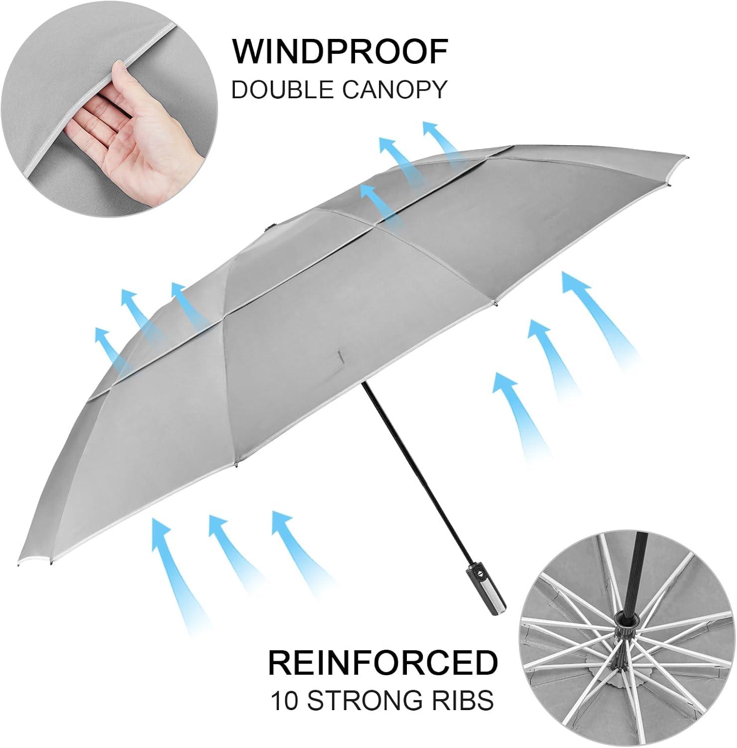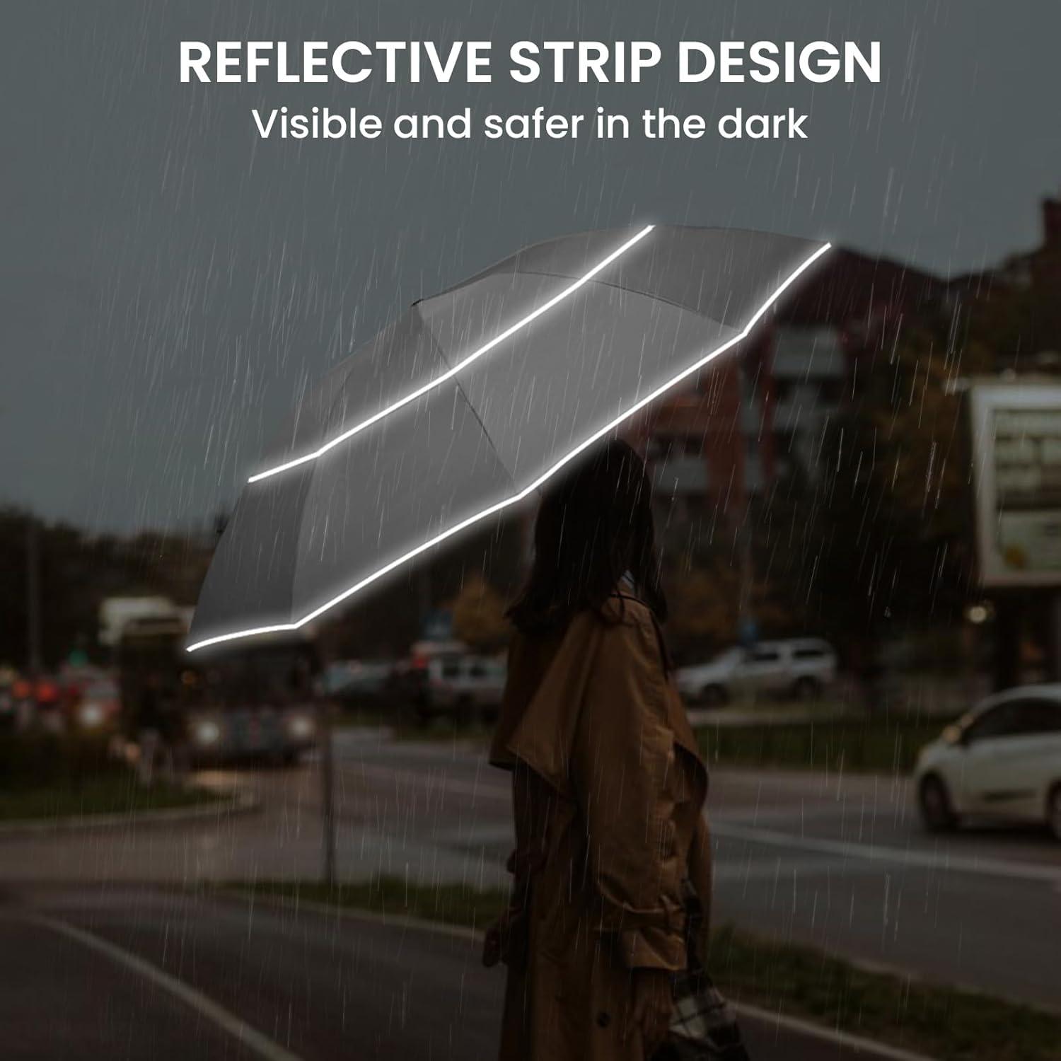 G4Free 54/62 Inch Windproof Inverted Umbrella with Reflective Stripe Large Compact Reverse Golf Umbrella for Rain 10 Ribs Double Canopy Travel Umbrella Automatic Open Close(Grey)