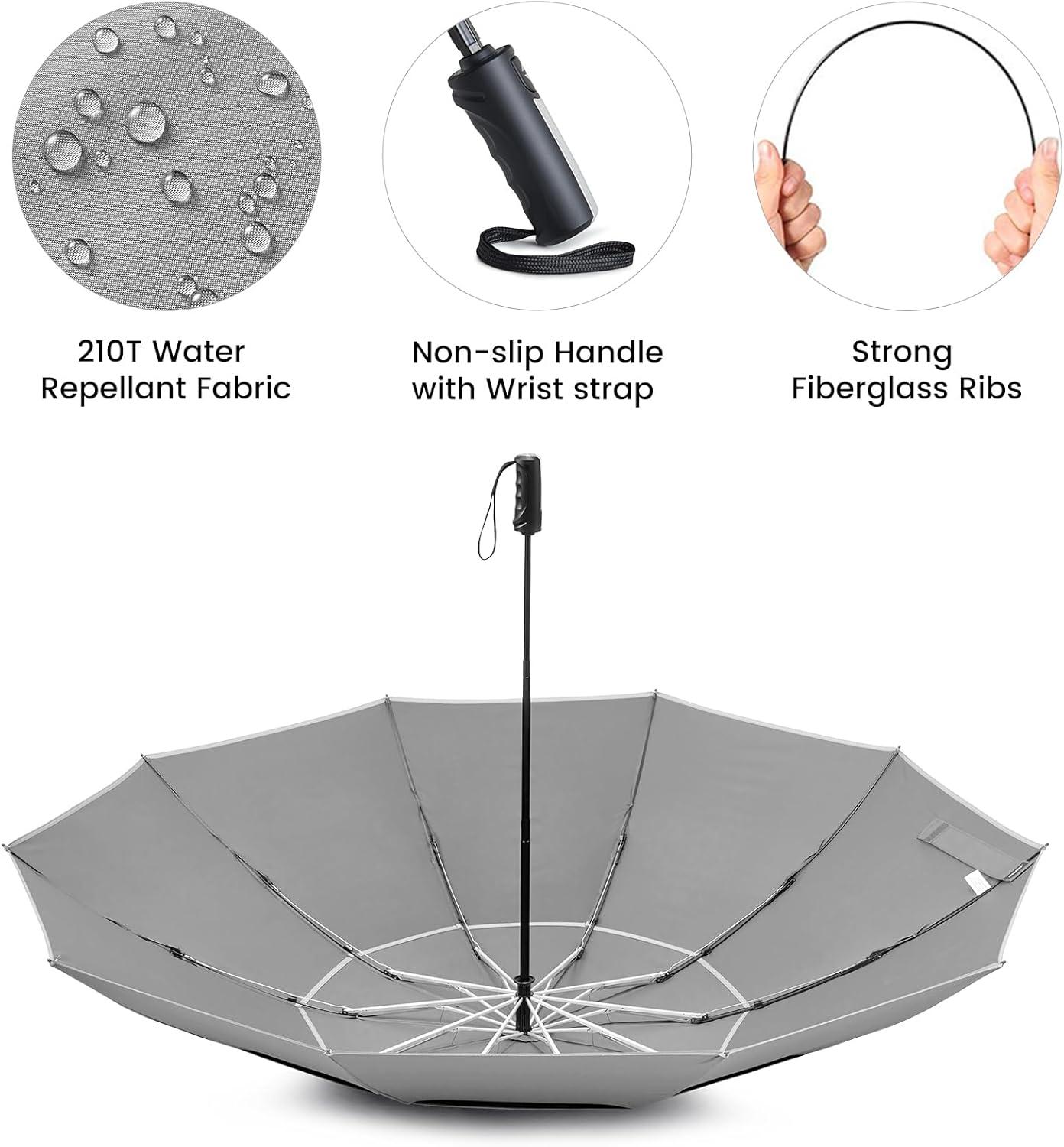 imageG4Free 5462 Inch Windproof Inverted Umbrella with Reflective Stripe Large Compact Reverse Golf Umbrella for Rain 10 Ribs Double Canopy Travel Umbrella Automatic Open CloseGrey