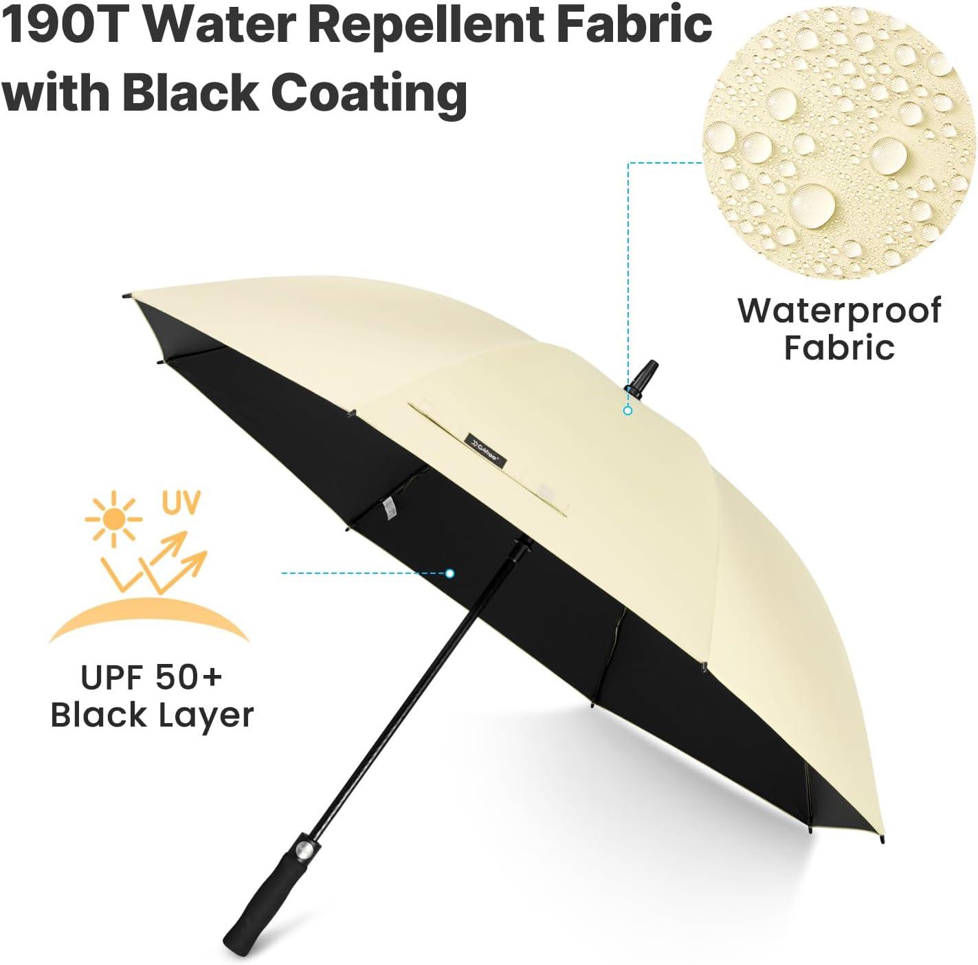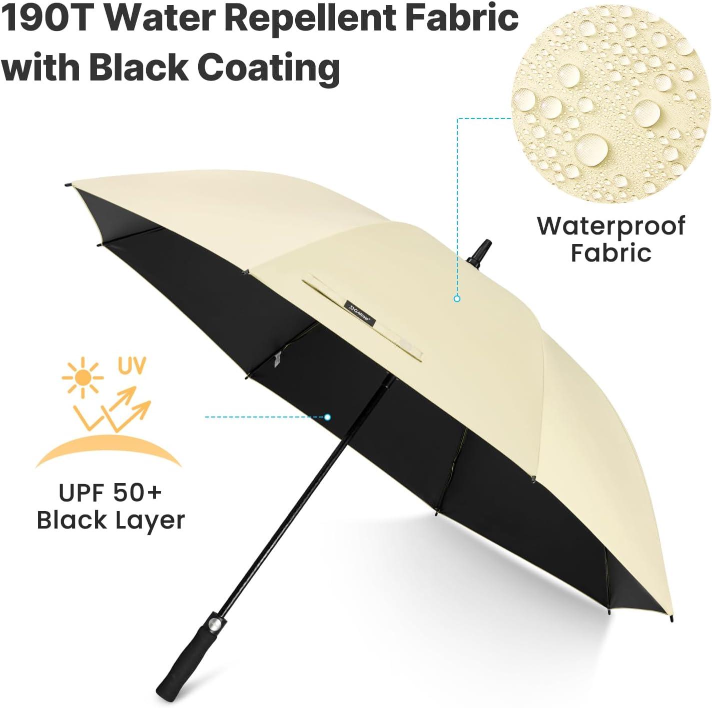 【62-INCH LARGE COVERAGE FOR TWO】62″ arc and 52″ diameter, this generously sized golf umbrella comfortably covers two adults. A great choice for golfers, commuters, couples, or anyone who needs wide, dependable protection from sun or light rain