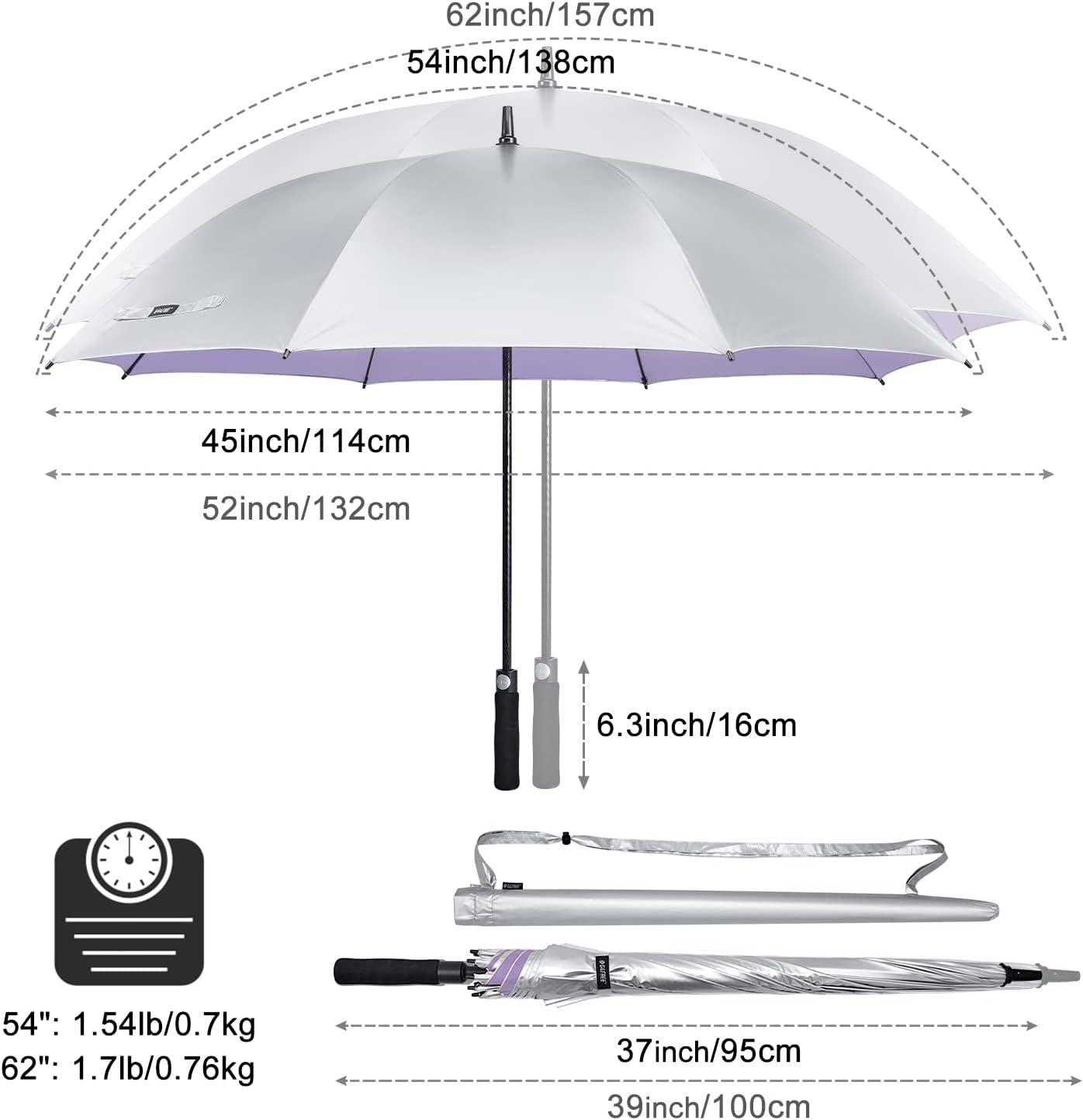 62 Inch Extra Large Umbrella. 62’’ arc, 52’’ diameter, this G4Free oversize umbrella is big enough to provide full coverage for two people. Suitable for men and women, family or lovers!