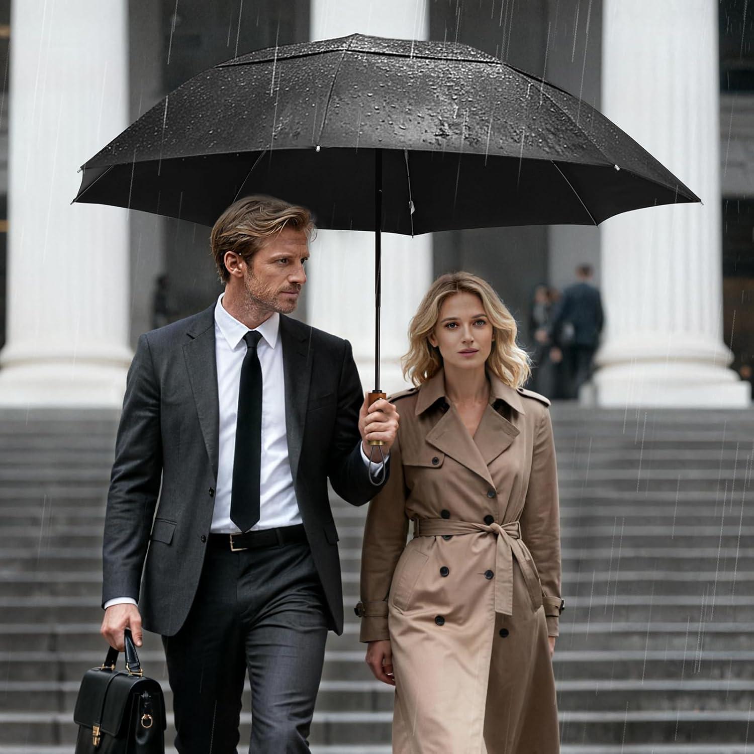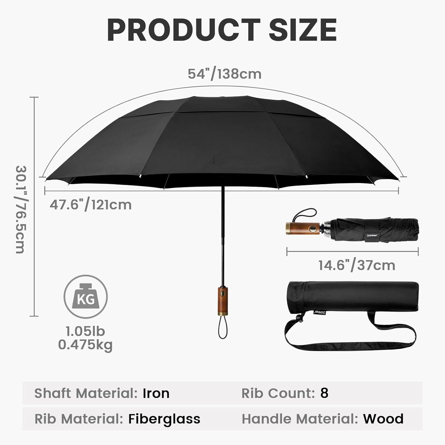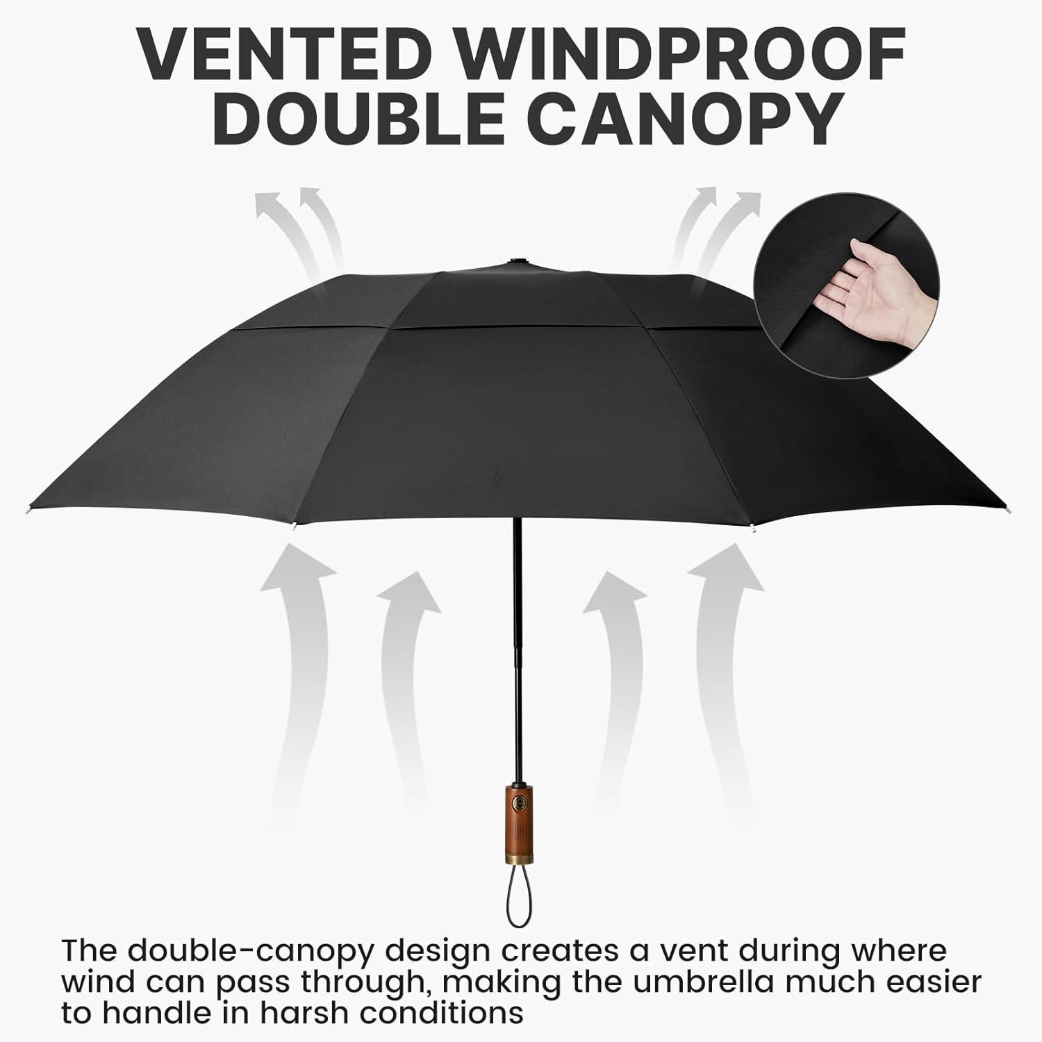 imageG4Free 54 Inch Inverted Windproof Umbrella with Wooden Handle Large Double Canopy Auto Open amp Close Golf Umbrella Portable amp Durable Rain Umbrella Fits Car amp BackpackBlack