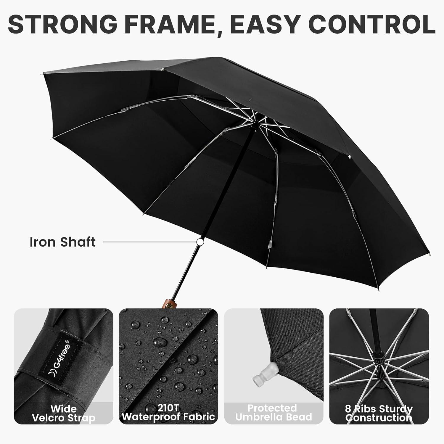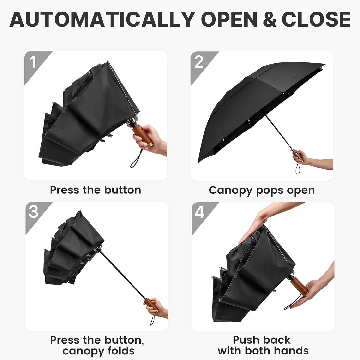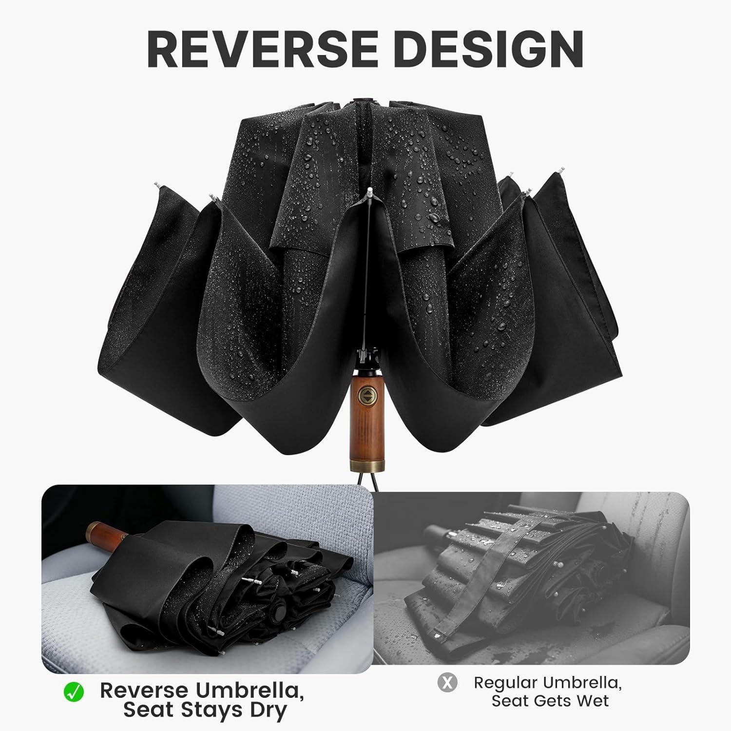G4Free 54 Inch Inverted Windproof Umbrella with Wooden Handle, Large Double Canopy Auto Open & Close Golf Umbrella, Portable & Durable Rain Umbrella, Fits Car & Backpack(Black)