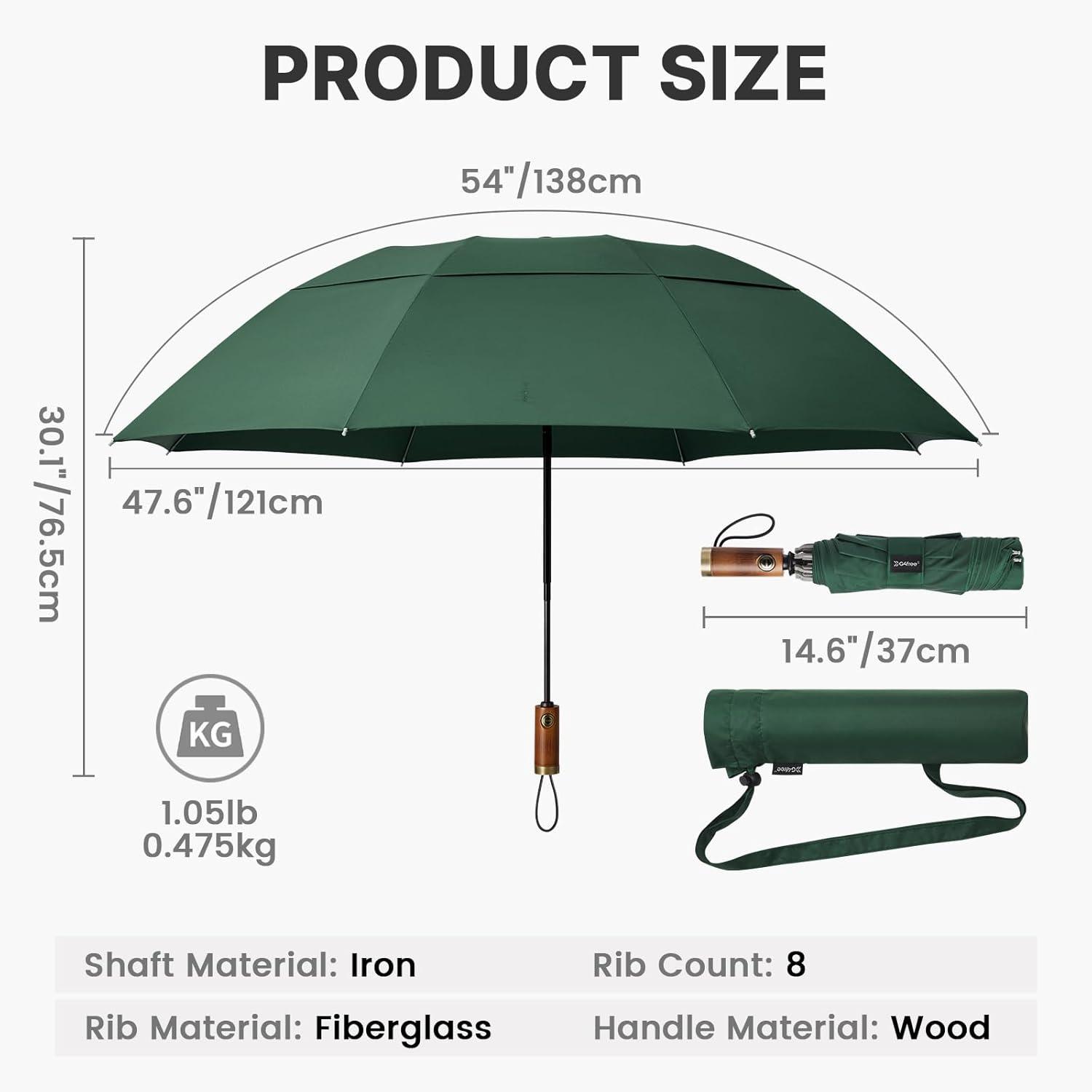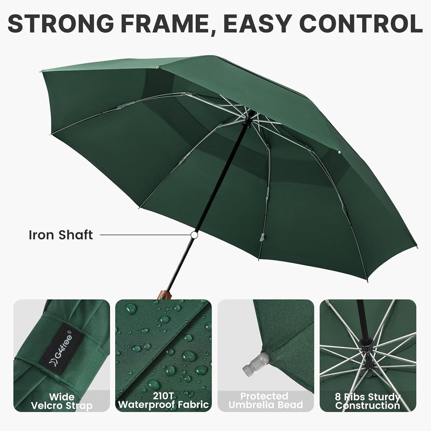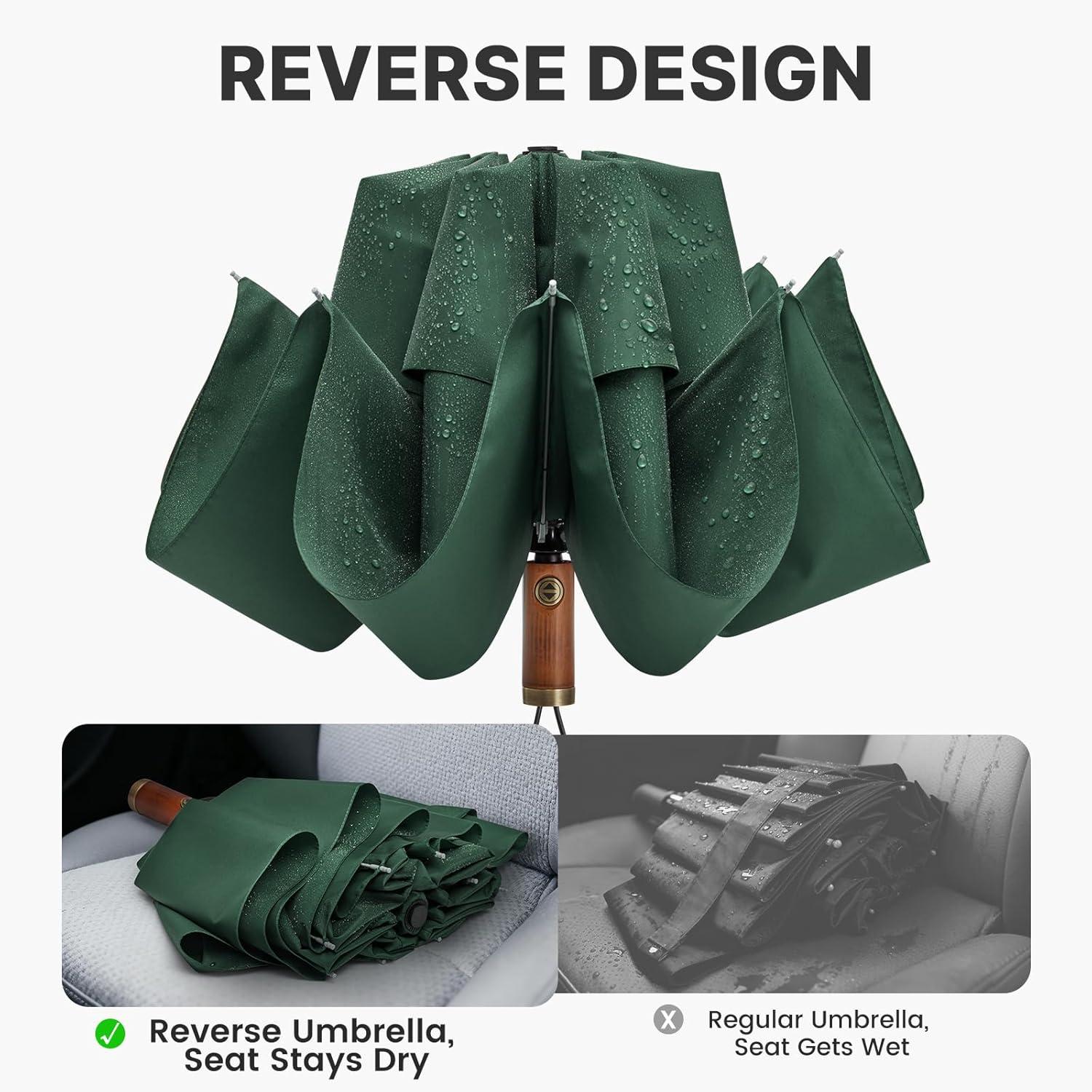 G4Free 54 Inch Inverted Windproof Umbrella with Wooden Handle, Large Double Canopy Auto Open & Close Golf Umbrella, Portable & Durable Rain Umbrella, Fits Car & Backpack(Dark Green)
