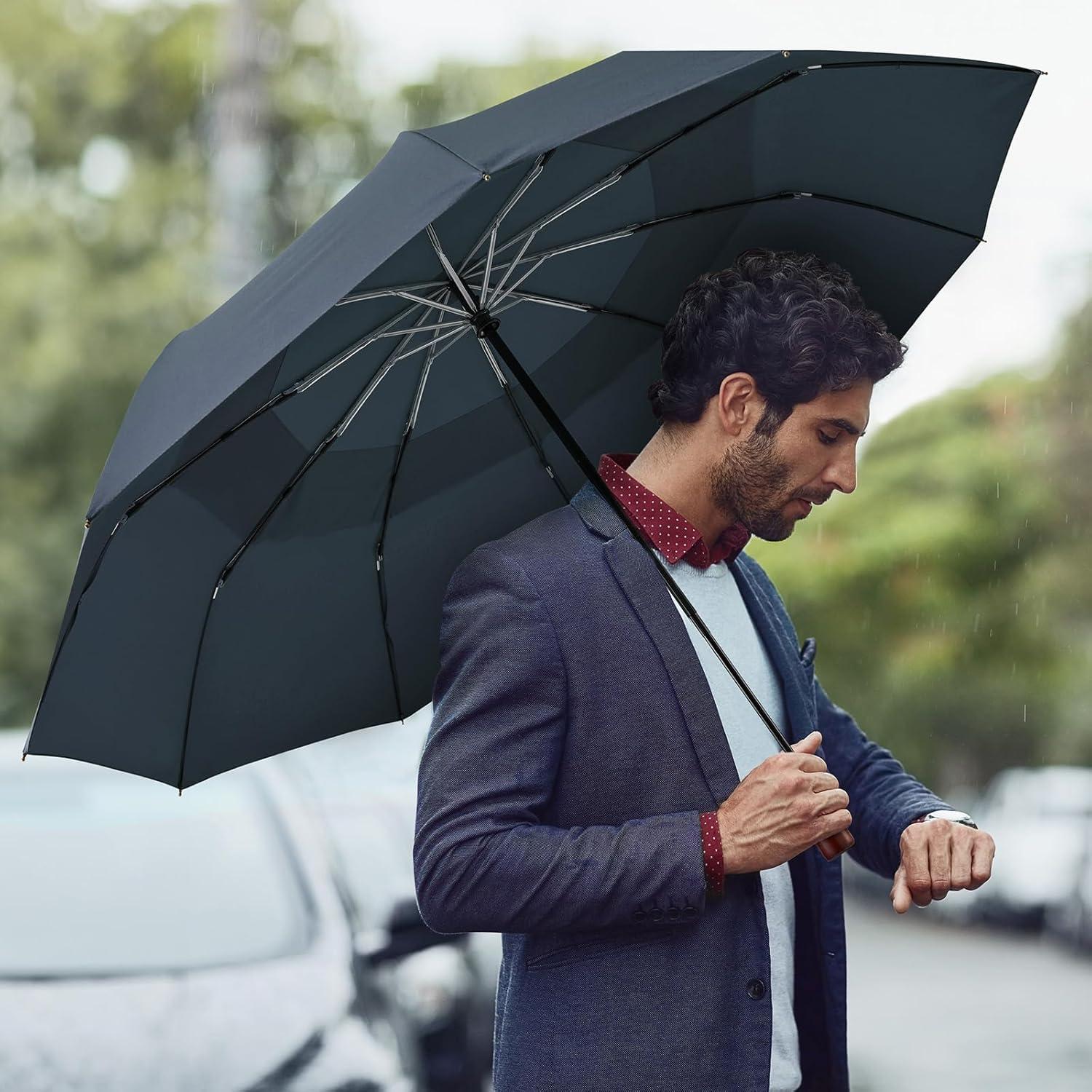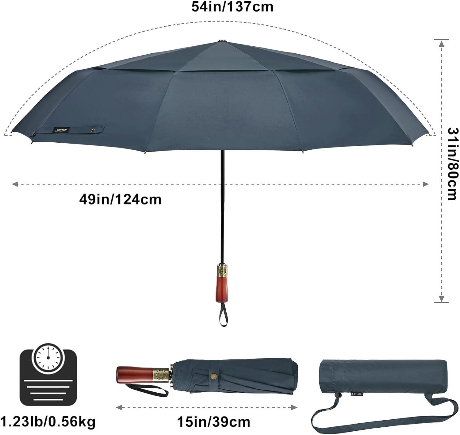 G4Free 54 Inch Large Compact Windproof Golf Umbrella for Rain Oversized Auto Open Close Folding Travel 10 Ribs Vented Double Canopy Umbrella for Women Men(Dark Blue)