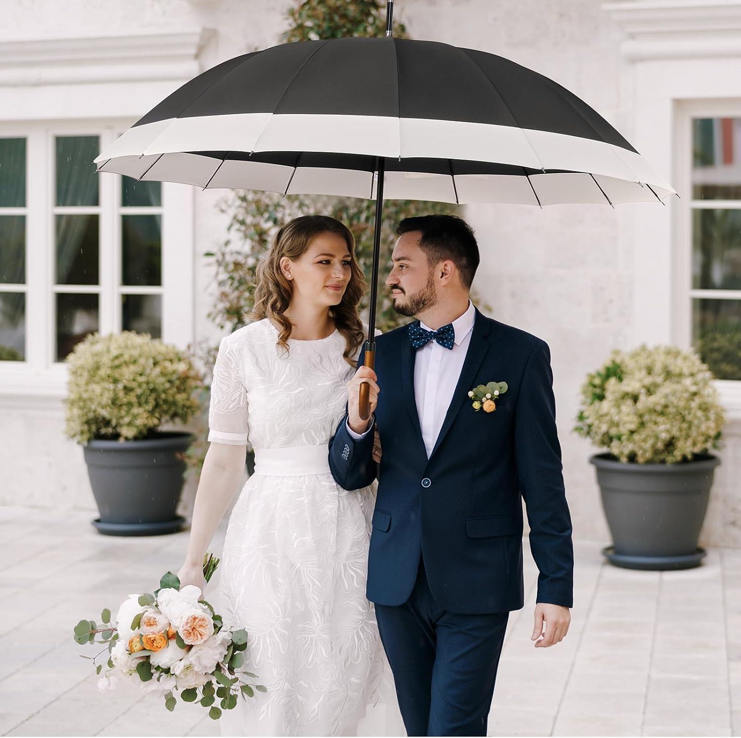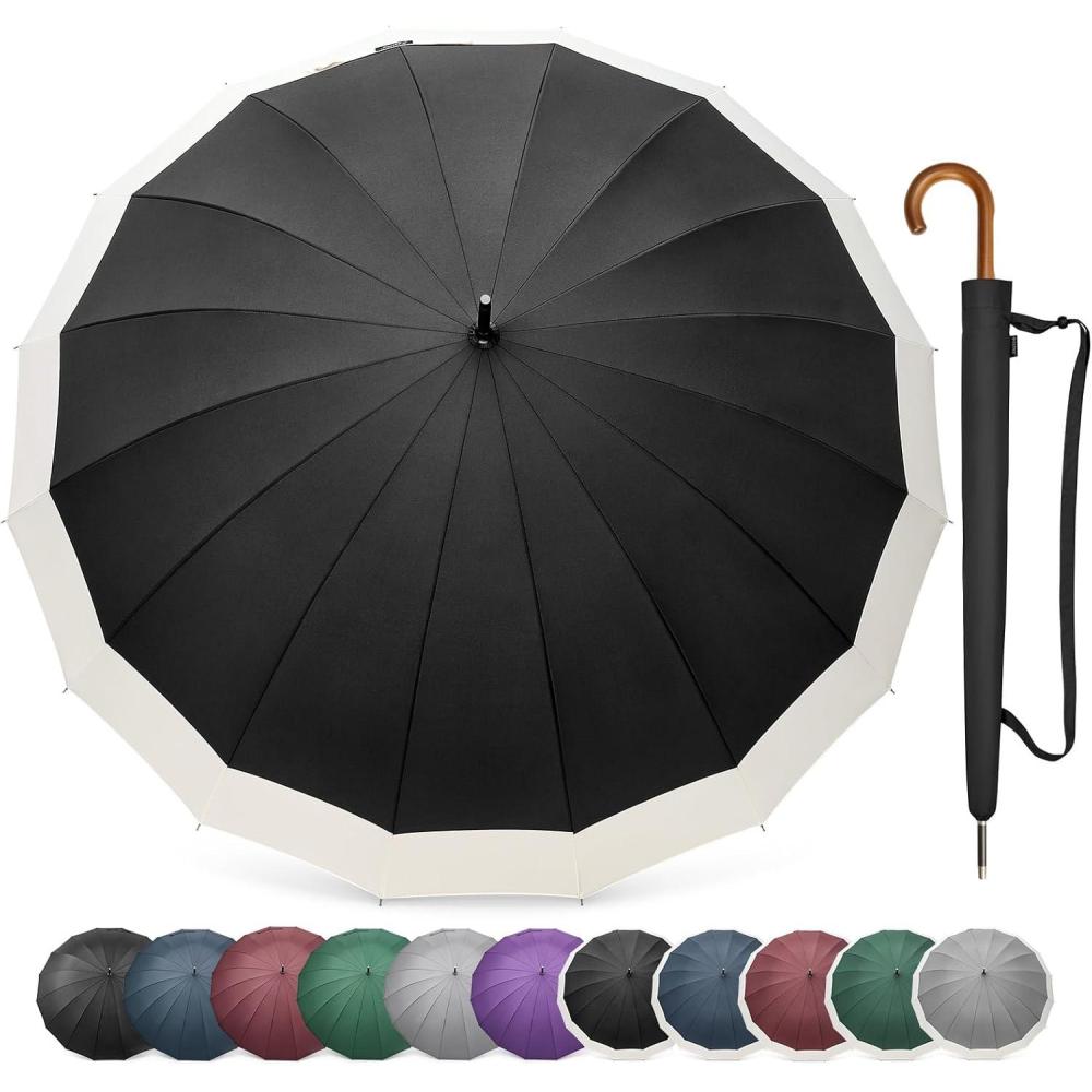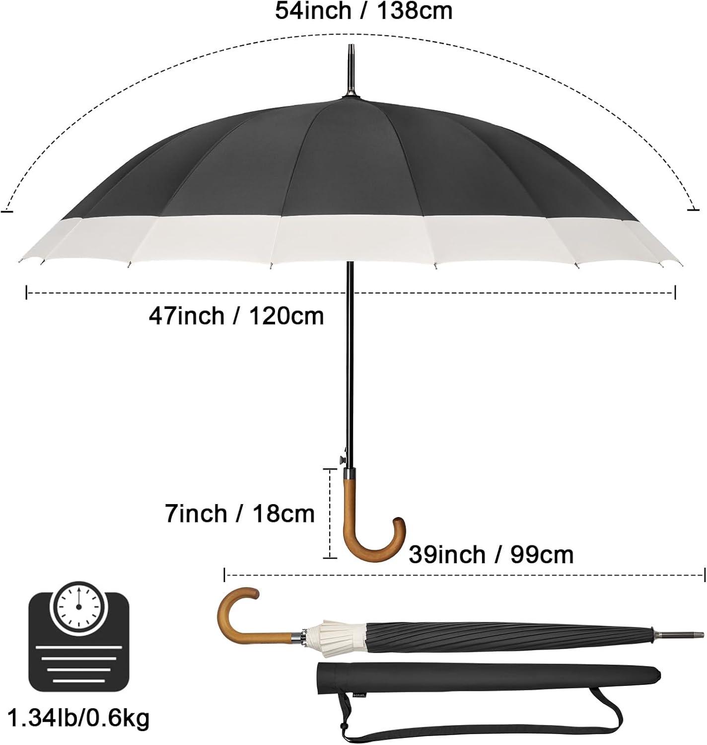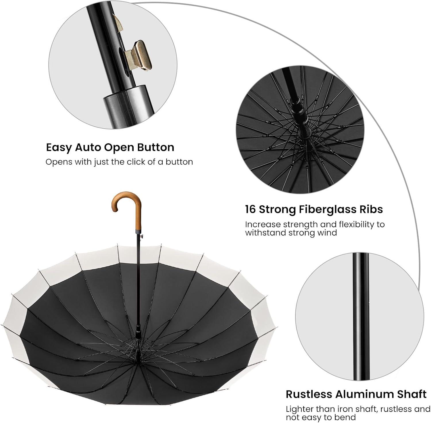 G4Free 54 Inch Large Windproof Umbrella for 2 Persons, 16 Ribs Auto Open Classic Wooden J Handle Cane Stick Golf Rain Umbrellas for Men Women Travel 120cm(Ivory/Black)