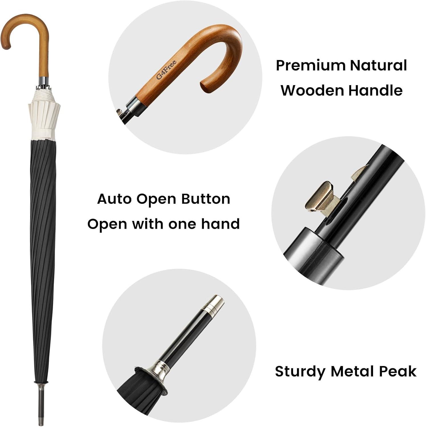 Be the first to review “G4Free 54 Inch Large Windproof Umbrella for 2 Persons, 16 Ribs Auto Open Classic Wooden J Handle Cane Stick Golf Rain Umbrellas for Men Women Travel 120cm(Ivory/Black)”