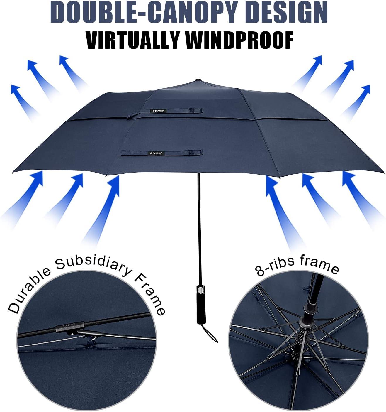 imageG4Free 62 Inch Portable Golf Umbrella Large Oversize Double Canopy Vented Windproof Waterproof Automatic Open Stick Umbrellas for Men and WomenWine RedDark Blue