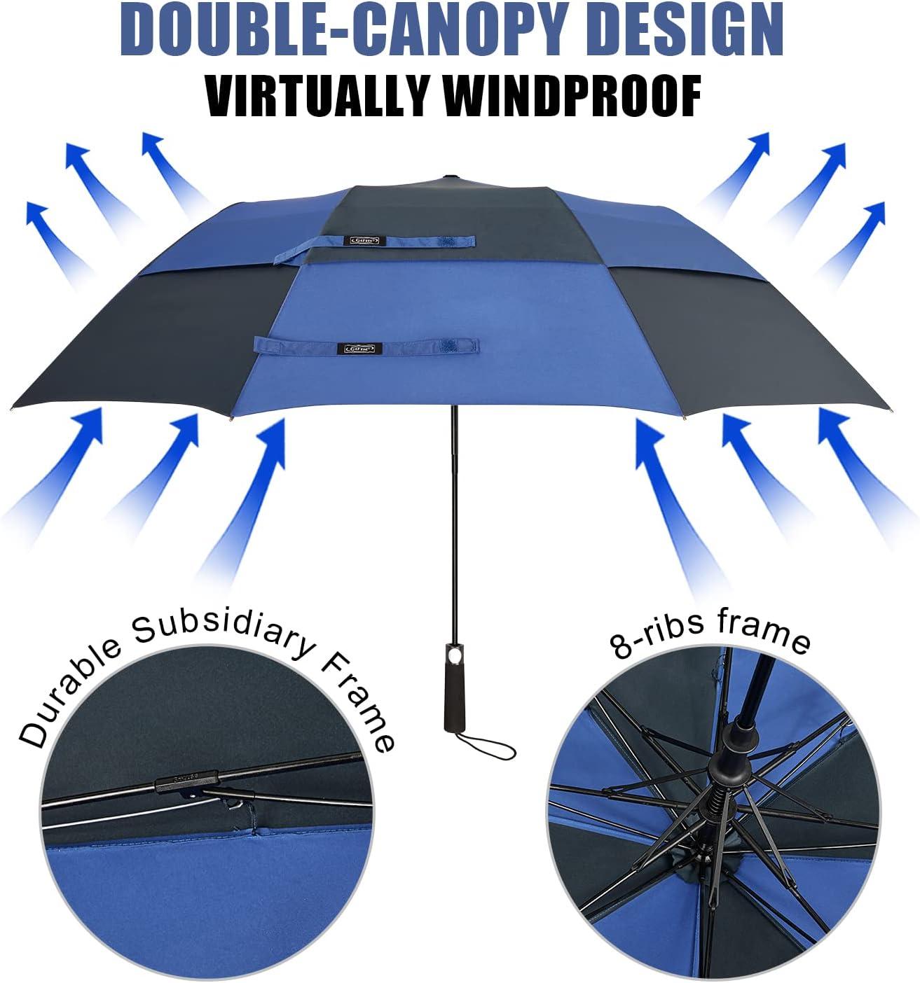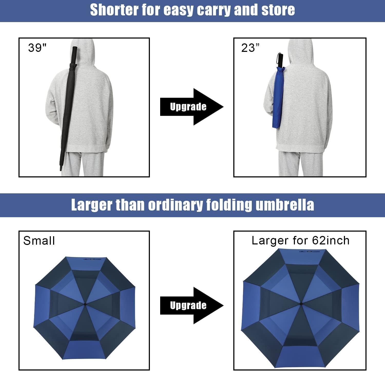 Buy with Confidence: This golf umbrella is a new version of the 62inch golf umbrella that features foldable ribs for durability with strict craftsmanship. Just be confident to use it. You will get 1-year customer service. For any problem, just feel free to contact us.