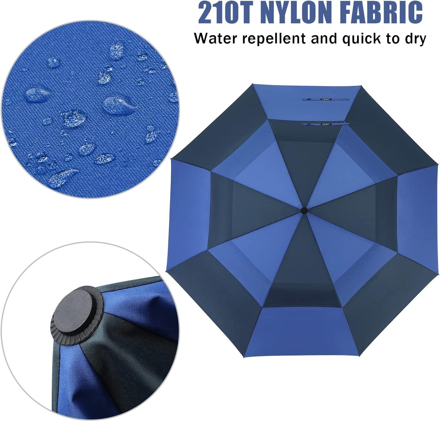 Double Canopy Strong Construction: Compared with other similar umbrellas that easily break and flip in the wind, this G4Free portable golf umbrella has superior windproof performance to others with upgraded durable fiberglass ribs, a vented double canopy allows the wind to pass through, avoiding from flipping over and breaking in the strong wind. Comfortable EVA grip with cord, 8 fiberglass ribs, and steel shaft, this G4Free umbrella will be perfect in a metropolitan city or a sports field.