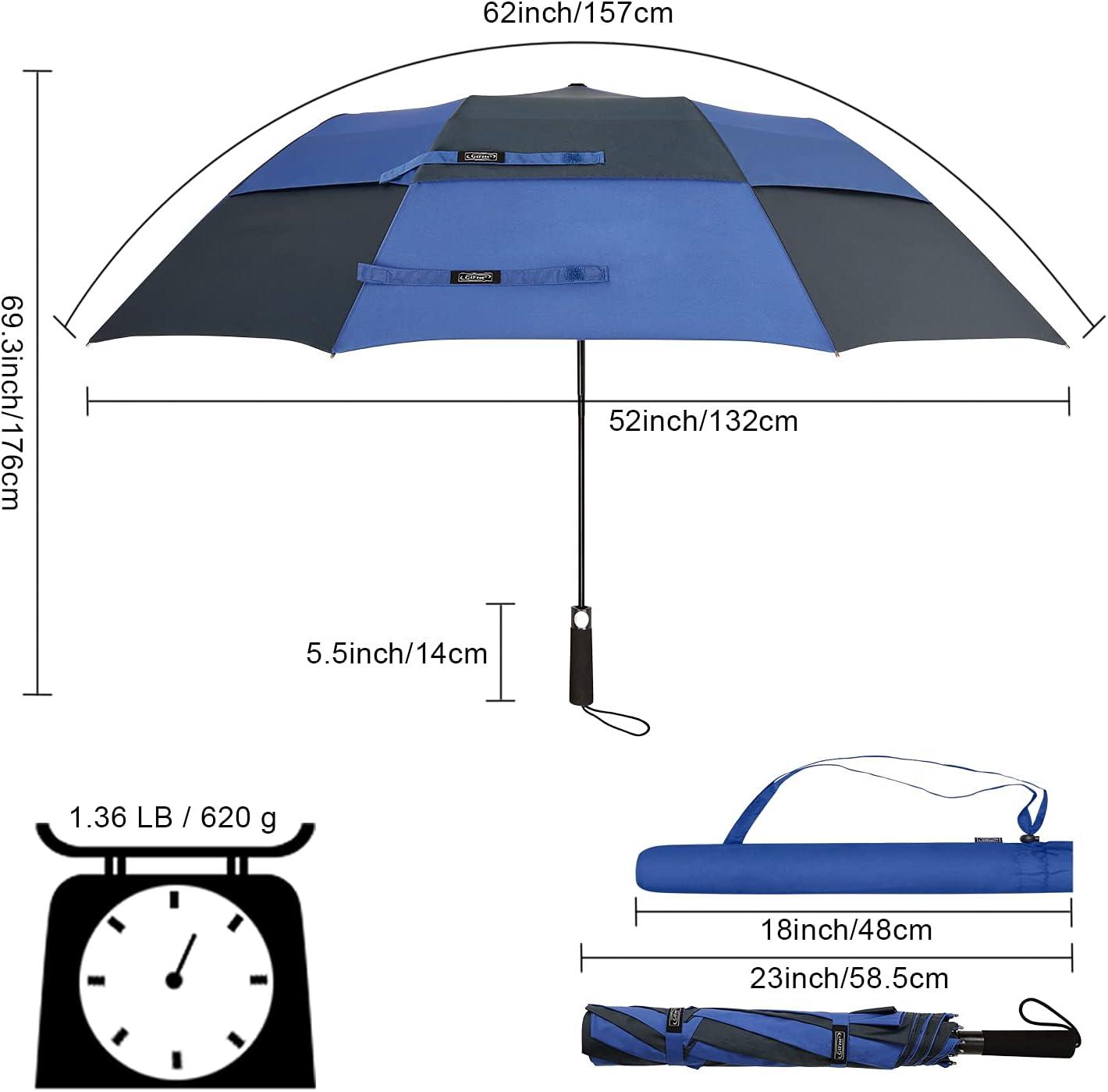 Revolutionary Innovation: The G4Free 62-inch Folding Golf Umbrella combines the best features of both Compact and Golf Umbrellas. The canopy opens up to a 62-inch arc. Foldable to only 23inch (58.5 cm) and weighing only 1.36 lb / 620g. Suitable for being packed inside the car, suitcase, or backpack. Larger and stronger than the small umbrellas. More compact than the stick umbrellas; Especially perfect for travel and golf lovers.